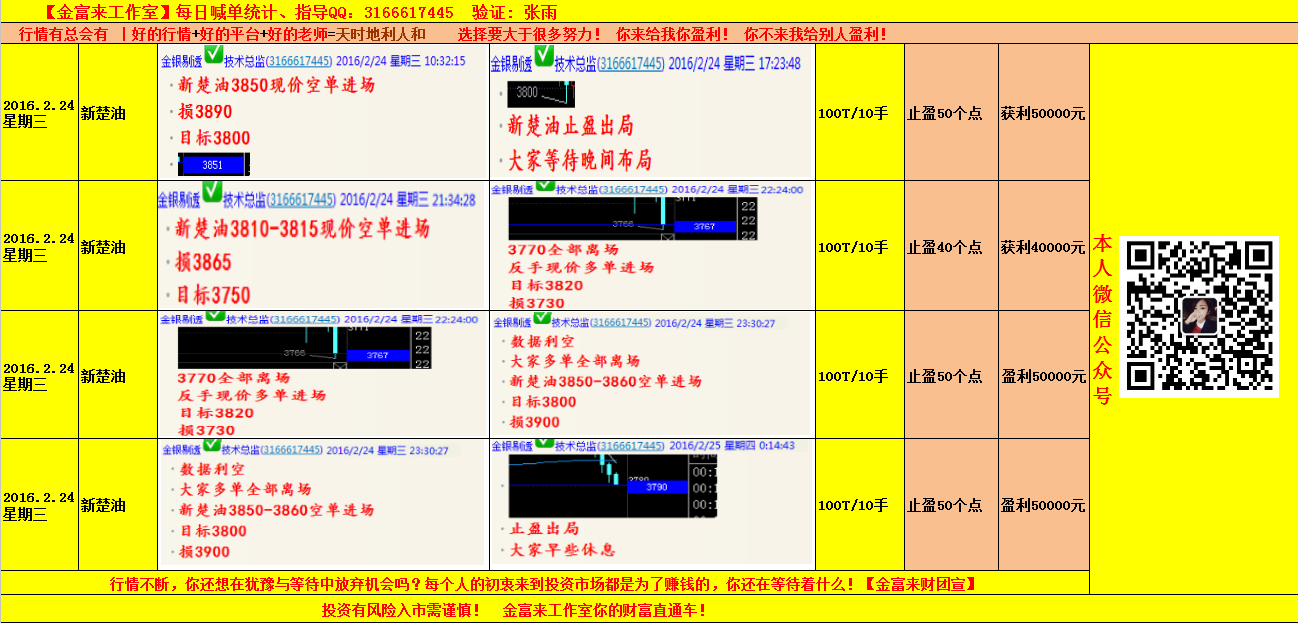 張雨:人生如果選錯了方向,停止就是進步! 人,總是很難改正自己的缺點,人,也總是很難發現自己的錯誤,有時,明知錯了,卻欲罷不能,一錯再錯,把握正確的方向,堅守自己的原則,世界上的誘惑很多,天上永遠不會掉餡餅,不要因為貪圖一時的快樂而付出慘痛的代價,如果發現錯了,一定要止步。 消息面: 美聯儲的風向發生微妙變化,繼喬治稱3月應考慮升息后,副主席費希爾周三(2月24日)講話指出,近期市場動蕩或不會對經濟產生太大影響。這也暗示,近期市場出現的“小插曲”可能仍不會對美聯儲的計劃產生太大影響,美元也“邁著小步奔向三連陽”。英鎊繼續在困境中掙扎,日內英鎊/美元一度跌破1.4000關口,經濟學家們開始擔心匯價恐將跌向1985年以來的低位。 縱觀近期的美聯儲官員講話,態度都偏向于鷹派。美國堪薩斯聯儲主席喬治(EstherGeorge)隔夜講話稱,“近期公布的數據對她而言并未暗示經濟基本面前景自12月份以來出現變化,美聯儲仍應考慮在3月舉行的下次會議上升息。”而美國經濟數據也有改善的跡象,這也緩解了市場對于美聯儲政策前景的疑慮。上周公布的美國通脹數據顯示,美國1月CPI年率增長1.4%,較前值提升了0.7%,同樣好于預期。剔除能源和食品價格的核心CPI年率增長2.2%,創下四年半來最大漲幅。 當EIA原油庫存數據增加,表明市場上原油供應量過剩,導致油價下跌。當EIA原油庫存數據減少,表明市場上對原油需求旺盛,導致油價上漲。EIA原油庫存數據的變化實際上反映了美國政府對油價的態度。EIA原油庫存數據對原油價格走勢有較大影響,同時EIA原油庫存數據對于美元匯價的影響也更為直接,影響也較大,行情總是在給我們開玩笑,很多時候逆數據走勢,數據利空,行情不跌反彈上漲 【EIA利空行情暴漲的原因】 美國當周EIA汽油庫存下降223.6萬桶,為2015年11月6日以來首次錄得下降,除卻戰略儲備的商業原油庫存上周進口780.2萬桶/日,較前一周減少11.7萬桶/日。美國原油產品四周平均供應量為1964.7萬桶/日,較去年同期上漲0.2%。EIA原油庫存數據公布后,WTI原油價格短線走高至31.31美元/桶,現有所回落。北京時間23:30EIA公布那一刻NYMEX4月WTI原油期貨瞬間成交10522張合約,隨后3分鐘合計成交10393張合約,大量買單涌現推升美油布油短線走高。 技術面: 回顧昨日行情走勢,亞盤時間段價格震蕩下跌,歐盤價格繼續緩慢下跌創日內新低,美盤價格迅速上漲刷新日內新高。 4小時圖來看,昨日原油EIA利空走多,表現出明顯的趨勢性上漲,低點在不斷上移,同時高點也不斷刷新,強勢格局也較為明顯,昨日亞歐盤一波小幅拉跌之后晚間EIA沖高新近期一波,,附圖macd死叉持續走跌,藍色能量柱持續縮量;kdj向上運行發散勢態 2.25今日策略新楚油: 1、回落3900附近進多,損3850,目標看3950-3970; 2、今天上方能見到4200,大家大膽空,損4250,目標看4100-4050; 【今日重點關注的財經數據與事件】2016年2月25日 周四① 08:00 美聯儲2016年票委布拉德發表講話 ② 15:00 德國3月Gfk消費者信心指數 ③ 17:30 英國第四季度GDP年率修正值 ④ 18:00 歐元區1月CPI年率終值、歐元區1月CPI月率 ⑤ 21:15 美聯儲2016年FOMC票委洛克哈特在2016銀行業前景會議中致辭 ⑥ 21:30 美國至2月20日當周初請失業金人數、美國1月耐用品訂單月率 ⑦ 22:00 美國12月FHFA房價指數月率 |