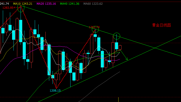 | 4.21早間黃金:黃金日線繼續保持三角形區間震蕩,1258短期形成小頂部,操作上繼續保持逢高做空思路。 價格反彈1251/1252做空,止損1256,目標看1242—1235。 |