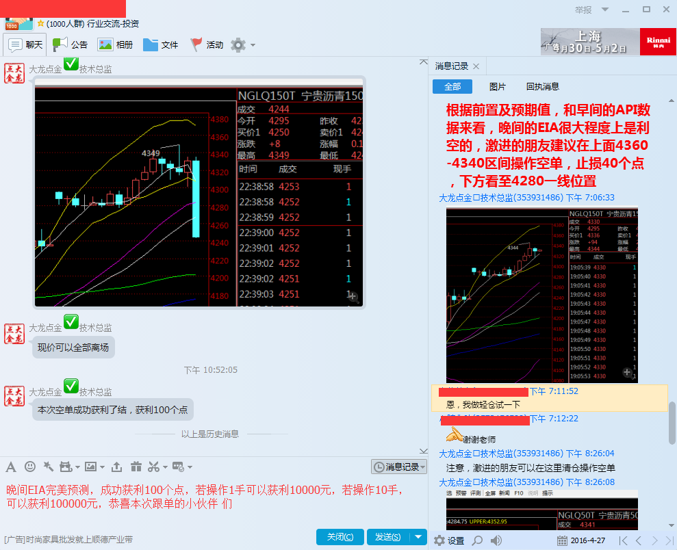 大龍點(diǎn)金:EIA完美預(yù)測(cè)成功止盈,你還在迷茫套單嗎? 要想在這個(gè)市場(chǎng)里長(zhǎng)久持續(xù)的走下去,老師必須有一套完整的交易體系,包括倉位技巧、風(fēng)險(xiǎn)控制和技術(shù)體系,這樣的話,能在震蕩行情中,給你明確的指引,即便利潤(rùn)小,但是很輕松,也很有成就感;單邊行情中,能讓你胸中有趨勢(shì),如果看對(duì)了,爭(zhēng)取利潤(rùn)最大化,而看錯(cuò)了的時(shí)候,能控制好風(fēng)險(xiǎn),并能客觀調(diào)整思路,順著趨勢(shì)扭虧為盈,而不是盲目主觀的堅(jiān)持自己的思路,盲目加倉反向碼單,置倉于風(fēng)險(xiǎn)邊緣。. 大龍點(diǎn)金做單宗旨] 1、為每一位客戶的倉位做最佳風(fēng)控,堅(jiān)決抵制重倉滿倉操作。 2、實(shí)時(shí)喊單全程跟單,建倉平倉絕不讓您錯(cuò)過精準(zhǔn)點(diǎn)位,使您的盈利最大化。 3、大龍點(diǎn)金從不預(yù)判行情,行情千變?nèi)f化非我所控,趨勢(shì)做單才是王道。 4、唯有先掌控先機(jī),方可占不敗之利,功可勝之-嚴(yán)格止損止盈 本次EIA完美提前預(yù)測(cè),空單成功獲利100個(gè)點(diǎn),若操作1手可以獲利10000元,若操作10手可以獲利100000元,恭喜本次跟單的小伙伴們 以下是本次和上次的盈利截圖 截止本次,本人已成功預(yù)測(cè)4次EIA走勢(shì),共盈利430個(gè)點(diǎn),若操作1手可以獲利43000元,若操作10手可以獲利430000元 【套單了怎么辦】 很多投資者在被套單過后,心里就開始發(fā)慌、著急,開始不停地加多個(gè)老師問意見,會(huì)不會(huì)漲回來或跌下去。在他們問的過程中早已經(jīng)錯(cuò)過最好的補(bǔ)救時(shí)機(jī)了。這就是為什么跟我做單的朋友,都能保持很好的心態(tài)的原因。 作為投資者的你,要學(xué)會(huì)對(duì)自己的資金負(fù)責(zé),畢竟你們的錢都是辛辛苦苦賺的,不是大水淌過來的,所以投資前自己一定要有一定的判斷能力。再一個(gè)原因,現(xiàn)在的老師不可能只圍著你一個(gè)人轉(zhuǎn),除非你是一個(gè)百萬倉。所以當(dāng)你套單了,千萬不要手無所措,如果方向明顯反了,一定要果敢,長(zhǎng)痛不如短痛。 對(duì)于套牢之后的減倉或斬倉,以我的經(jīng)驗(yàn)來看,投資者在做這樣的操作時(shí),特別是在下跌趨勢(shì)中。很多 投資的都有這樣的操作經(jīng)歷,套牢之后天天盼解套,終于等到有一天解套了,又不甘心了:我都拿了這么多天了,怎么也要賺一些錢。結(jié)果錯(cuò)過了最好的平倉機(jī)會(huì),當(dāng)市場(chǎng)重新進(jìn)入下跌,又再次被套。最終徹底絕望,喪失信心割肉出局。這是下跌趨勢(shì)中最忌諱的。 【心態(tài)修煉欠火候】 心累的時(shí)候,換個(gè)角度看世界;壓抑的時(shí)侯,換個(gè)環(huán)境深呼吸;困惑的時(shí)候,換個(gè)位置去思考;猶豫的時(shí)候,換個(gè)思路去選擇;煩惱的時(shí)候,換個(gè)思維去排解。生活中,學(xué)會(huì)換位思考,你的世界才會(huì)精彩。 【當(dāng)斷則斷,反受其亂】 我是一個(gè)非常坦率的人,未雨綢繆。大道至簡(jiǎn),就是我的操作風(fēng)格! 本人只做實(shí)力,做長(zhǎng)久,做風(fēng)采,謝謝大家配合! 如果你還是在行情里不知所措,套單、鎖單或者盈利不佳的都可以直接向本人咨詢。 沒有不賺錢的投資,只有不成功的操作!是否盈利在于買漲買跌時(shí)機(jī)的把握。因此如何尋找所謂的現(xiàn)貨的底部或者高位,同時(shí)把風(fēng)險(xiǎn)的規(guī)避到最小化才是重點(diǎn) |