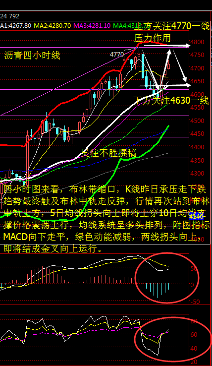吳往不勝 5.20 現(xiàn)貨黃金 現(xiàn)貨瀝青行情解析 【5.20 操作建議】 寧貴瀝青操作建議 4770-4780一線做空,止損40個點,看到4700-4670 4630-4640一線做多,止損40個點,看到4700-4740 現(xiàn)貨黃金操作建議 1262-1264一線做空,止損4個點,看到1250-1245 1242-1245一線做多,止損4個點,看到1260-1265 【技術面分析指導】 現(xiàn)貨瀝青(寧貴瀝青)分析 布倫特原油收跌0.12美元,報每桶48.81美元。盤中大跌1.55美元或超過3%,報47.38美元。即將到期的6月美國原油收跌0.03美元,報每桶48.16美元,盤中低見46.73美元。 寧貴瀝青昨日于4663一線開盤,早間亞盤階段出現(xiàn)一波下跌。也就在下跌之前于4668一線,吳往不勝及時在盤中給出了空單建議。整個亞盤,乃至歐盤行情,一直處于震蕩下行,在沒盤之前,最低到了4580一線。美盤開盤之后,最低到了4550一線,也就是說昨日的空單,獲利了有100多個點。最終收于4684,要是有空單沒有及時止盈的伙伴,現(xiàn)已被套。手里有套單的朋友,可以聯(lián)系吳往不勝。 今日早間寧貴瀝青于4690一線開盤。從日線圖來看,布林帶開口向上,k線受上軌壓制,一直運行在上軌下方。均線系統(tǒng)呈多頭排列,沒有出現(xiàn)拐頭的跡象,附圖指標MACD超買區(qū)走平,紅色動能縮量,KDJ隨機指標三線于超買區(qū)有聚攏趨勢,RSI指標,三線走平平行運行。從四小時圖來看,布林帶縮口,K線昨日承壓走下跌趨勢最終觸及布林中軌走反彈,行情再次站到布林中軌上方,5日均線拐頭向上即將上穿10日均線支撐價格震蕩上行,均線系統(tǒng)呈多頭排列,附圖指標MACD向下走平,綠色動能減弱,兩線拐頭向上,即將結成金叉向上運行。RSI指標三線聚攏,以向上運行,KDJ隨機指標拐頭向上運行。再看小時線,布林帶縮口,k線運行在布林上軌下方,受制于上軌壓力。MA1上穿結成MA2金叉向上運行,同時穿過MA3、MA4均線,MA2以拐頭向上運行,即將于與MA3結成金叉向上運行。附圖指標,MACD紅色動能放量,RSI指標與 KDJ指標,呈多頭排列。綜合來看,吳往不勝認為早間亞盤操作上建議回調(diào)做多為主,具體操作細節(jié)以及昨日午夜有套空單的朋友可以咨詢吳往不勝本人。 現(xiàn)貨黃金分析 現(xiàn)貨金跌0.3%,報1,253.80美元,脫離稍早觸及的4月28日來最低的1,244美元。周三金價下挫1.7%。現(xiàn)貨銀下滑2.2%,報每盎司16.47美元。 金價昨日日線收帶下影線陰柱,延續(xù)前一個交易日跌勢,打破震蕩區(qū)間1260-1290選擇下行,下方最低觸及1243附近后反彈,布林帶有縮口跡象,k線受制于布林中軌,運行在中軌下方。均線指標死叉往下,附圖MACD于0軸上方死叉往下,綠柱放量增強,STO指標金叉失敗再次死叉,四小時線看金價超跌反彈明顯,短短兩天跌幅達40美金,金價在1240-1243一線受支撐明顯,布林帶開口運行,k線運行在布林下軌上方。MA1勾頭向上運行,附圖MACD指標于0軸下方死叉,動能即將耗盡,綠色動能減弱。KDJ指標與RSI指標呈多頭排列,短線金價仍有上行至1260附近的跡象,從小時線看,布林帶平穩(wěn)向前運行,k線站上了布林中軌上方。MACD指標0軸下方金叉向上運行,紅色動能放量。吳往不勝建議日內(nèi)黃金在操作上以反彈空為主,做單嚴格止損。日內(nèi)關注1263-1245區(qū)間內(nèi)的情況,在此區(qū)間內(nèi)沒有出現(xiàn)明顯破位,均可按照建議操作。出現(xiàn)明顯頗為之后,可以聯(lián)系吳往不勝再進行下步操作。 【消息面導讀】 周四(5月19日)美聯(lián)儲本周的鷹派紀要繼續(xù)對市場施壓,美聯(lián)儲三號人物杜德利當日的講話進一步明確了美聯(lián)儲仍然有可能在6月升息,雖然美國數(shù)據(jù)好壞參半,但美元仍然在升息預期升溫的背景下走出了一波續(xù)漲行情。原油方面,雖然美元指數(shù)本周走強施壓油價回落,但尼日利亞和加拿大帶來的供應中斷的憂慮卻支撐油價,油價最終在多空膠著的震蕩行情中基本持穩(wěn)。 具體市場上,美元指數(shù)攀升觸及一個半月高位,受美聯(lián)儲年內(nèi)加息預期支撐;歐元兌美元下行觸及1.12關口,歐洲央行4月份紀要和歐洲央行官員的公開言論都較為鴿派;金價跌至三周低位,繼續(xù)受美聯(lián)儲升息預期打壓;油價基本持穩(wěn),加拿大和尼日利亞供應問題抵消美元走強的影響。 金價跌至三周低位,繼續(xù)受美聯(lián)儲升息預期打壓。金價周四下挫逾1%,至三周低點,延續(xù)周三跌勢,周三美聯(lián)儲發(fā)布上次政策會議記錄,暗示美聯(lián)儲可能早至下月升息。 美聯(lián)儲最新的會議記錄暗示,如果數(shù)據(jù)直指第二季經(jīng)濟成長增強,且通脹和就業(yè)改善,美聯(lián)儲可能升息。金價對升息高度敏感,升息推高了持有非收益性黃金的機會成本,且提振美元,而黃金是以美元計價的。 美國數(shù)據(jù)顯示,上周初請失業(yè)金人數(shù)減少,是美國經(jīng)濟在首季放緩后重新加速的最新跡象,這提振美元,令金價的下跌壓力一度上升。周四美聯(lián)儲副主席費希爾稱為提高長期均衡利率,需要提升美國經(jīng)濟的趨勢增長率。 油價基本持穩(wěn),加拿大和尼日利亞供應問題抵消美元走強的影響。油價周四大致持穩(wěn),因對加拿大和尼日利亞供應受阻的擔憂,抵消了美元走強的影響。投資人對美聯(lián)儲下月加息的預期升溫,帶動美元上揚。 周五將成為近月合約的7月美國原油期貨結算價跌0.11美元,報每桶48.67美元。6月/7月合約正價差(遠期升水)為10月