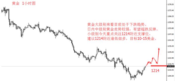 今日關(guān)注: 17:00 歐元區(qū)5月調(diào)和消費(fèi)者物價(jià)指數(shù)初值(年率) 20:30 加拿大第一季度GDP(年化季率) 20:30 美國(guó)4月個(gè)人消費(fèi)支出(月率) 22:00 美國(guó)5月諮商會(huì)消費(fèi)者信心指數(shù) 基本面: 昨日周一整體市場(chǎng)較為清淡,全天維持較弱走勢(shì)的日元這一產(chǎn)品,成為試產(chǎn)關(guān)注點(diǎn)。不禁想到日元貶值之路到底會(huì)跌倒哪里。近期日本的出口下滑幅度卻大大超過預(yù)期,導(dǎo)致制造業(yè)的處境在5月間進(jìn)一步惡化,大大凸顯了該國(guó)進(jìn)行結(jié)構(gòu)性改革,減輕對(duì)國(guó)際貿(mào)易依賴的緊迫性。 今天一早英鎊再次啟動(dòng),引領(lǐng)非美產(chǎn)品走強(qiáng)。今天將成為非美各產(chǎn)品能否正式展開超跌反彈的關(guān)鍵。各產(chǎn)品在非農(nóng)前繼續(xù)一波像樣的上漲來迎接周五晚上的非農(nóng)數(shù)據(jù)。這樣在非農(nóng)數(shù)據(jù)利多美元的預(yù)期下,黃金等各其他產(chǎn)品也不會(huì)輸?shù)锰珣K。 此外,今晚20:30將公布美國(guó)4月個(gè)人消費(fèi)支出數(shù)據(jù),預(yù)期比前值略微上升0.1%。若數(shù)據(jù)與預(yù)期值相差不大,則波動(dòng)屆時(shí)會(huì)比較小。 技術(shù)面: 美元在上周的大幅上漲后,表現(xiàn)較弱,其中黃金、歐元等小幅反彈,今日建議重點(diǎn)關(guān)注非美的反彈趨勢(shì)的延續(xù)性,關(guān)注能否繼續(xù)新高。 黃金總體來看,目前反彈動(dòng)能依然沒有結(jié)束,多頭延續(xù)性較好,今日我們重點(diǎn)關(guān)注能否出于1214一帶強(qiáng)勢(shì)調(diào)整后繼續(xù)加速上沖。建議1214附近逢低做多,止損5美金,目標(biāo)10美金。 歐元目前來看,上行動(dòng)能在不斷累積,今日下午有望加速上行,建議1.113附近逢回調(diào)做多,止損30點(diǎn),目標(biāo)60-80點(diǎn)。 |