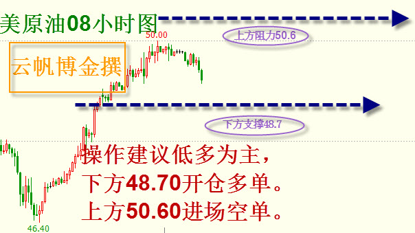 美原油08操作以低多為主,48.70進場多單,止損48.30,目標50.00-50.40