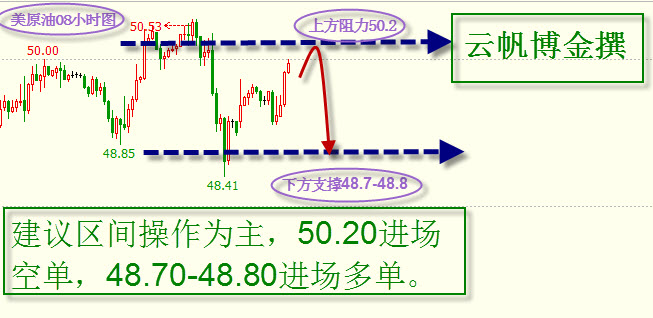 晚間建議區間操作為主,50.20進場空單,止損50.60,目標49.00-48.70