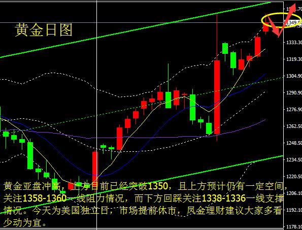 鳳金理財:火爆超級非農周,油價持穩金銀沖高 近期全國大范圍城市地區遭到了連續性暴雨的沖擊,很多周邊地方已然成災,鳳金在這里溫馨提醒廣大朋友們在家注意防水防濕,出門注意安全,也希望現在的惡劣天氣能夠盡快結束,期待陽光的到來。 周一(7月4日)亞早盤金價小幅上漲逾0.5%,并刷新1357.3美元日高。今天美國將迎來脫離英國的紀念日——獨立日。由于美國獨立日假期影響,紐交所休市一日,CME交易時間也將受到影響,部分美國經濟數據將推遲發布。每周API和EIA石油庫存數據將相比往常推遲一天發布。同時,原本在每月第一個周五發布的非農就業報告將順延一周至本周五發布。對全球經濟的擔憂令美國在未來數月內升息的可能性減弱,但更多地將取決于美國經濟數據,市場將特別關注7月8日將發布的非農就業報告,以尋找升息線索。與此同時,美聯儲和歐洲央行將于本周公布6月貨幣政策會議紀要,超級非農周將再次引爆市場! 上周五美聯儲三位重要官員發表公開言論安撫市場。其中有美聯儲副主席費希爾、美聯儲票委布拉德以及美聯儲官員梅斯特。美聯儲副主席費希爾稱,需要等待以及觀察英國脫歐對美國的影響,英國脫歐負面影響有多大取決于政策,美聯儲的首要目標是維護美國經濟,預計美聯儲將保持在其一直所處的非常緩慢的漸進加息路徑上。美聯儲票委布拉德表達了樂觀的觀點。布拉德稱,英國脫歐不會對美國造成重大沖擊,甚至可能是零影響,不認為英國脫歐事件的影響會在歐洲進一步蔓延。美國需要提高生產率增速,當前處于低增長階段;美國經濟可以表現得更好。預計美國經濟繼續維持2%的增速。美國克利夫蘭聯儲主席梅斯特發表了偏鷹派的加息言論。梅斯特稱,在加息問題上等待太久非常危險。并不認為美國勞動力市場出現顯著的反轉,預計美國就業和通脹將會取得持續進展。在6月的FOMC會議上認為循序漸進的加息路徑是合適。 油價資訊服務公司(OilPriceInformationService)的全球能源首席分析師表示,7月4日(美國獨立日)當周的周末,美國的汽油需求或將升至歷史上從未出現過的最高水平。在美國獨立日假日期間,美國汽油需求可能超過100萬桶/日,此前,歷史上曾經錄得過的每周平均最高汽油需求水平曾經達到過981.5萬桶/日。 寧貴瀝青上周的波動區間仍然沒有突破之前筆者鳳金理財分析的4400-5000大箱體。下方4400關口附近屢有觸及但最終都沒有跌破,給了多頭反彈有力支撐,而上方阻力區間在于4800-5000區間內,雖然屢有試探,但也有心無力,5000關口仍然是可見而不可及。受上軌壓制和下軌強力支撐,MACD快慢線聚攏或有交叉向上形成金叉趨勢,綠色動能縮量;RSI交叉向上運行;KDJ交叉向上發散運行。綜合而言,原油價格上行趨勢明顯,需重點關注5000關口的突破情況,漲破5000之前,我們只可維持謹慎看多的思路! 寧貴瀝青部分操作建議: 1、下方回踩4640-4660一線做多,止損4600下方,目標上看4700-4750-4800一線; 2、上方如見4840-4860一線做空,止損4900上方,目標下看4750-4730一線。 從現貨黃金周線上來看,目前已經五連陽,市場看漲聲一片。周末期間英國退歐再添阻力,今日亞早盤黃金跳空高開1342附近,避險情緒再次升溫預計再助金價上行。筆者鳳金理財建議大家先不需太過盲目看漲或者看空,對我們操作無益,首先我們可以先界定多空的區間,以此來幫助我們日常操作。日線關注1360附近阻力,下方回調1336缺口做多。今天為美國獨立日休市,美盤提前停盤,排除了受加息打壓回落的可能,日內操作短線為主,今天美盤做好清倉準備。 現貨黃金部分操作建議: 1、上方反彈1356-1358附近做空,止損1362上方,目標下看1350-1345一線; 2、下方回踩1338-1336附近做多,止損1332,目標上看1345-1348-1350一線; 3、上方首次觸及1368-1370一線做空,止損1374,目標下看1360-1358一線; 【今日重點關注的財經數據與事件】2016年7月4日周一 (美國因獨立日休市一日) ①16:30歐元區7月Sentix投資者信心指數 ②17:00歐元區5月PPI月率 |