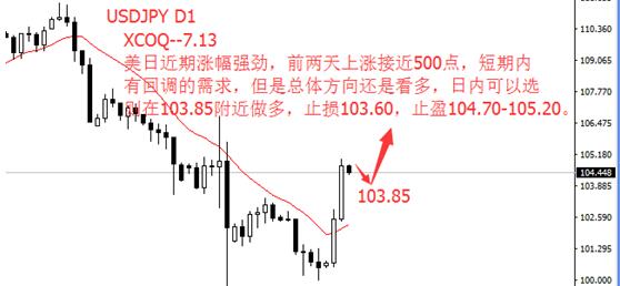 今日關注: 12:30 日本5月工業產出月率終值 16:00 IEA公布月度原油市場報告 17:00 歐元區5月工業產出月率 22:00 加拿大央行宣布利率決定和貨幣政策聲明 23:15 加拿大央行行長波洛茲召開記者會 基本面分析: 周二,朋友圈被中國南海仲裁鬧劇刷屏,中國不能少一點的圖片,傳遍神州大地。對于菲律賓提請的仲裁結果,中國外交部以不接受,不承認回應。表面上看,這是一次地區爭端有可能演變成一次軍事沖突。實際上,中美雙方都知道,雙方誰也不會開第一槍。美國所謂的“肌肉展示”,無非是想讓中國知道他的厲害,而中國心里清楚:一切的軍事炫耀,都不過是紙老虎而已。 美國之所以在中國南海制造爭端,其實還是美國背后的金融目的。英國的脫歐,其實已經等于讓美國加息了一次,歐洲方面的資金大量流向美國,美元指數和美國股市大漲,道瓊斯指數更是創下新高,這說明美國的“吸金大法”還是非常管用的。然而,當中國7月8日公布外匯儲備意外上升130億美元的時候,美國發現,中國也成了吸金之地。因此,就馬上在韓國部署了薩德反導系統,同時,借著南海仲裁的日子,把幾個航空母艦群都拉到了中國南海,給中國制造壓力,最重要,是企圖在亞洲制造紛爭,驅趕在亞洲的資金能夠流向美國,繼續為美國經濟輸血。 對中國而言,中國一要在南海紛爭中控制得住局面,因此,軍事上,中國做足準備;外交上,中國以國際法爭奪話語權;經濟上,要讓資金覺得中國是塊熱土,投資可以獲得不錯的回報,這也是A股周二大漲的原因之一。 本來,如果有地區紛爭,一般情況下,會導致有市場擴散風險情緒,避險資金會尋求黃金避險,然而,周二的黃金卻以大跌示人,說明了市場沒把南海仲裁當成風險情緒。這里面,恐怕跟中國目前對黃金掌控一定的定價權有關系。中國不想讓市場覺得南海仲裁是個危機,所以打壓黃金,展示市場的平和情緒。這也在一定程度上,說明中國目前在全球金融領域初步具備了掌控走向的能力。 技術面分析: 黃金走勢在1375附近受到壓力之后,在日線上形成了頂部形態,幾天之內,回撤接近50美金。從目前日線看,黃金下跌的走勢還沒有止住的跡象,近期對黃金的交易還是以高空為主,日內反彈到1341-1343一帶可以做空,止損1346,止盈在1320-1315。 美日方面,受“直升機撒錢”消息的影響,美日周二上漲接近105.00,幾天之內上漲幅度接近500點。短線看,美日有回調的需要,但是總體方向上,并沒有改變做多的思路,因此,日內不妨待回調103.85附近做多,止損103.60,止盈104.70-105.20。 |