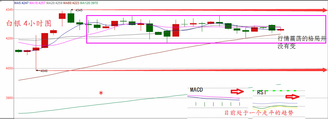 周四銀價格呈現先跌后漲態勢,英國央行意外維持利率水平不變,全球股市呈現上漲走勢,承壓金銀價格。大多數分析師認為,逢低買入金銀是很好的投資行動,但目前價位并不理想。 從技術面上來看: 白銀從4小時圖上看任然處于一個震蕩的行情,各均線指標呈現聚合之勢,MACD技術指標黏合,相對強弱指標RSI走平,目前來看行情在區間震蕩還會維持一段時間; 策略布局: 壓力位:4315 支撐位:4180 1、建議反彈到4310上方可以布局空單,目標4260-4245;止損4350; 2、建議回落到4190-4210可以布局多單,目標4260-4285,止損4160; 注意:強勢抽陽或者抽陰出現破位,單子就不做; 蔡少寄語:現貨投資市場看似利潤喜人,其實處處暗藏虧損危機,作為一個風險投資,投資者首先要做好的就是控制風險,不控制風險操作和賭博沒有什么兩樣,我們在控制好風險的前提下,穩健把握每一天有把握的利潤點,不賭一勞永逸,只求地久天長,相信進入這個市場大多數人的初衷都是想通過投資能更好改善以后生活,但是在賺錢的隊伍中卻總是沒有你,蔡老師是很愿意傾聽投資者的話語并給出自己的一些建議看法 ; |