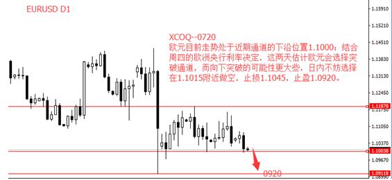 基本面分析: 周二英國公布了眾多經濟數據,其中,英國6月零售物價指數年率升至1.6%,比預期的增長1.5%高出0.1個百分點;PPI和CPI數據也都好于預期,數據分別為0.7%和0.5%,均要好于預期。從這幾個數據公布值看,英國的經濟短期內似乎并沒有受到脫歐公投結果的影響,相反,經濟還是沿著固有的軌道向好運行。 英國央行副行長伍茲表示,英國金融穩定面臨來自新興市場經濟的風險,許多發達經濟體的低利率環境都會給金融穩定帶來風險。從伍茲的言論可以看出,他是偏向反對低利率的運行環境的,也即偏向英國不降息。 英國不降息,并且經濟數據運行良好,這就向歐盟展示一點,英國脫歐,并沒有那么可怕,相反,對比目前不斷遭受恐怖襲擊的歐盟國家,英國完全有能力保護好自己國家公民的安全和自由。這會讓歐盟很尷尬,同時,也會讓一些正想要脫離歐盟的國家,提供一個參考范例。 歐盟委員會發布英國退歐對歐盟影響的初步評估,報告稱,歐盟的經濟前景主要受到英國不確定性的影響,英國公投結果增加了歐盟經濟前景面臨的風險;歐元區明年CPI升幅可能減少最多0.25%;GDP增速也有可能被脫離0.25%-0.5%。 正當歐盟和英國為退歐的事爭論的時候,美國或許正在一旁收獲漁翁之利。美聯儲通訊社希森拉特表示:如果美國經濟數據較好,美聯儲可能在9月再次加息;鑒于英國公投后,金融市場企穩且美國經濟增長顯示出提速的信號,美聯儲官員似乎對年底前加息更有信心。 技術面分析: 歐元走勢方面,目前的歐元走勢正在近期通道1.1000-1.1200的下沿位置,即接近1.1000;由于歐元在這200點的空間里已經震蕩了接近一個月,再結合周四將會公布歐洲央行的利率決議,所以,歐元在這兩天里選擇突破通道是比較大概率的事情,而如果突破,向下突破的可能性則更大些。日內交易可以選擇高空,在1.1015附近做空,止損1.1045,止盈1.0920。 黃金走勢方面,走勢目前在4小時的趨勢線附近受到支撐,下一步有望開始反彈,反彈的目標在1350附近;日內交易可以選擇在1330-1332一帶做多,止損1326,止盈在1345-1350。 財經日歷: 16:00 歐元區5月季調后經常帳 16:30 英國5月三個月ILO失業率 17:00 瑞士7月ZEW投資者信心指數 22:30 美國7月15日當周EIA原油庫存變動 |