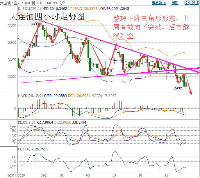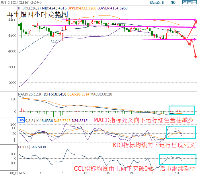 消息面: 美國WTI原油9月期貨周五(7月22日)收跌0.56美元,或1.25%,報44.19美元/桶,本周下挫3.7%。布倫特原油9月期貨周五收跌0.51美元,或1.10%,報45.69美元/桶,本周重挫3.99%。伊拉克原油出口料將回升加重了市場對供應過剩問題的擔憂,同時美國石油活躍鉆井數創8月以來最長增長周期,而美元日內也強勢走高,諸多利空齊聚一堂令油價承壓下挫,當前的看空情緒已經開始蔓延。美國WTI原油期貨價格盤中最低觸及43.74美元/桶,布倫特原油期貨價格盤中最低觸及45.17美元/桶。 市場回顧: 上周五大連油市場回顧,最高點3013,最低點2932,市場回顧81點。 行情回顧: 上周五大連油行情走勢回顧,亞盤時間段行情震蕩下跌,歐盤時間段行情反彈上漲刷新日內新高,美盤時間段行情下跌刷新日內新低后反彈。 技術面: 目前從大連油四小時走勢圖分析來看,布林帶開口向外擴張,價格沿布林下軌向下運行。上周長期整理三角形形態有效向下突破,MACD指標均線死叉向下運行,CCL指標均線-100附近拐頭向下運行走平,綜合各指標及盤面分析得出,短期小幅度上漲,預計后市行情繼續看空。 操作建議: 今日大連油整體趨勢以逢高做空為主,以低多為輔。 以上操作建議僅供參考、投資有風險、操作需謹慎。 【現貨白銀技術分析】 目前再生銀四小時走勢圖分析來看,價格處于震蕩下跌運行,布林帶開口向外擴散,價格處于布林帶中軌與下軌之間,關注下方支撐4150附近,周線價格在頂部已有空頭信號初現,預計本周行情繼續看空回落。MACD指標均線死叉向下運行紅色量柱減少,KDJ指標均線向下運行初現死叉,CCL指標均線由上向下穿破0軸,后市繼續看空,綜合各指標及盤面分析來看,短期震蕩盤整,預計后市行情繼續下跌。 操作建議: 今日再生銀整體趨勢以逢高做空為主,以低多為輔。 日內阻力:4240~4280 日內支撐:4180~4140 激進者空單4180~4170區間內可以考慮擇機入場做空,止損4210上方,目標4140/4100。 穩健者多單4140~4130區間內可以考慮擇機入場做多,止損4100下方,目標4160/4180。 以上操作建議僅供參考、投資有風險、操作需謹慎。 今日可以關注的財經數據及事件: ①16:00 德國7月IFO商業景氣指數及德國7月IFO商業現況指數 ②18:00 英國7月CBI工業訂單差值 ③22:30 美國7月達拉斯聯儲商業活動指數 ④時間待定 美國民主黨召開全國代表大會(至7月28日),最終確定民主黨總統、副總統候選人 以上操作建議僅供參考、投資有風險、操作需謹慎。 【以實盤操作建議為準】 本文僅代表王氏議金個人觀點,不同平臺注意價格的換算,撰稿人:王氏議金! |
