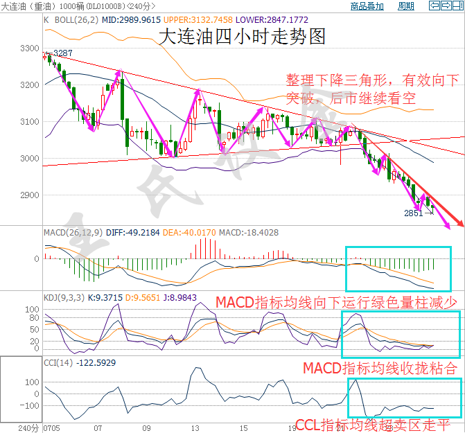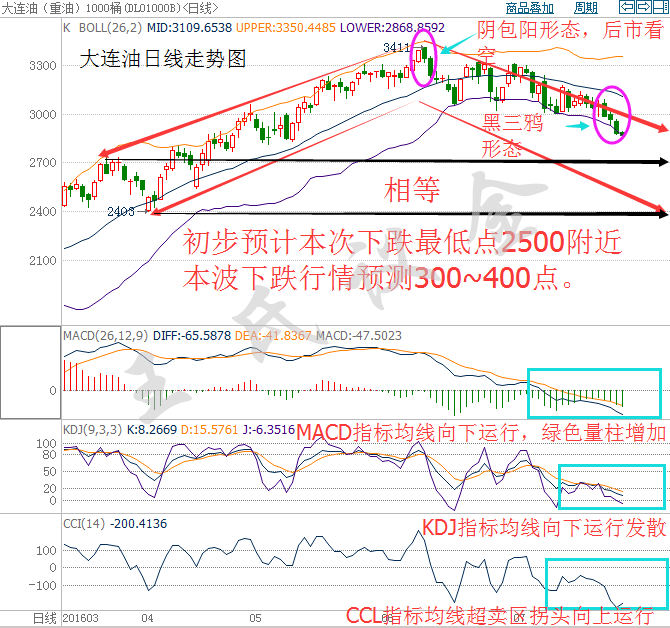 (來源:王氏議金 wangkangjun018) 周日,摩根士丹利在其報告中表示,如今汽油正處于嚴重供應過剩的階段,庫存高達5年以來的最高水平,而這將會是原油在下一個月迎來暴跌的主要原因。摩根士丹利的分析師表示,如今原油的供需關系正朝一個不斷惡化的趨勢邁去。而煉油商為了維持利潤則會不斷削減產能利用率,進而對成品油進行折價銷售,并推動油價在下半年持續下跌。 同時,報告中顯示,這是三年來第一次原油需求低于成品油的需求。煉油商是原油的真正消費者,因此理論上來講,成品油的需求應該與原油的需求達成平衡。但如今,成品油市場供應過剩,導致煉油利潤率衰退,削減了經濟運行動能,而且分析師預計原油需求將在未來幾個月進一步惡化。 (來源:王氏議金 wangkangjun018) 事實上,汽油對油價的影響占了很大的比重,不過由于最近供應中斷以及新興市場的原油需求恢復,價格已有所提升。且過剩的汽油供應則意味著煉油廠將提早完工,并且比往常的夏季關閉時間更長,進而平衡原油市場上的供需關系。同時,周一花旗集團的一份原油報告也著重于煉油主題。花旗集團分析師認為,成品油庫存的不斷上漲以及美元走強都將是油價接下來的重磅逆風因素。 再者,能源服務公司貝克休斯上周五公布報告顯示,上周美國活躍鉆機數上升14座,至371座。這是美國活躍鉆機數連續第4周增加,在近7周中美國石油鉆井數有6周錄得增加,顯示隨著油價反彈,美國石油生產活動持續恢復。 而且,在美國原油鉆探平臺數量見底以及市場正在逼近夏季駕駛季節高峰期的形勢下,歐佩克方面供應也有抬頭跡象。除了擔心利比亞原油恢復出口,根據裝運數據和行業消息人士,伊拉克7月石油出口料將增加。這將是該國石油供應在兩個月下降后恢復增長。數據顯示,伊拉克北部7月以來的原油出口已增至55萬桶/日,6月為51.4萬桶/日。 【現貨原油技術分析】 (來源:王氏議金 wangkangjun018) 目前從大連油四小時走勢圖分析來看,各指標顯示空頭力量削弱,多頭正在占據盤面,從盤面K線走勢來看,價格處于布林帶中軌與下軌之間,布林中軌向下運行,說明空頭依然存在,短期上漲應是技術性反彈。MACD指標均線向下運行走平,綠色量柱縮量,KDJ指標均線收攏向上,CCL指標均線超賣區向上運行,綜合各指標及盤面分析得出,價格短期小幅度上漲,預計后市還是以看空為主。 (來源:王氏議金 wangkangjun018) 目前從大連油日線走勢分析,從盤面來看頂部形成陰包容形態,第二日收一根大陰線,確認頂部反轉形態,后市持續看空,若日收銀,形成黑三鴉形態,加重空頭信號,說明下方仍有下降空間,整體走勢形成倒”V“形態。現在我們在來看技術性指標。MACD指標均線向下運行,綠色量柱增加。KDJ指標均線向下運行發散。CCL指標超賣區向下運行。綜合各大技術性指標及盤面形態,后市中長線強烈看空,初步預計本次下跌最低點2500附近,本次下跌波動點位400~500點。 (來源:王氏議金 wangkangjun018) 目前從大連油周線走勢圖分析,從盤面來看價格在頂部收“射擊之星”K線,看空信號(需后市確認),次日收“T”字線,頂部反轉信號,配合射擊之星確認頂部,后市看空。從技術指標分析來看,價格運行到布林帶中軌附近,布林帶開口收攏,MACD指標均線死叉向下運行并放出綠色量柱,KDJ指標均線向下運行發散,CCL指標均線向下運行穿破-100,到達超賣區。綜合各大技術指標及盤面分析來看,本周收線受布林中軌支撐收線2600附近,破位下方關注支撐2400附近。初步估計本次行情下跌點位400~500。 (來源:王氏議金 wangkangjun018) 目前從大連油月線走勢圖分析,從盤面分析來看價格上月收十字星,本月收線3000下方,則形成黃昏之星形態,無需確認,后市強烈看空。從技術指標分析來看,MACD指標均線走平收攏,KDJ指標均線收攏,CCL指標均線向下運行。初步預測最低點2400附近,預計本次下跌400~500點。綜合各指標及盤面分析來看,本月月底收線3000下方,空單可進場布局做中長線,目標2500附近。 因此在如此好的大行情來臨時作為投資者我們需要做的就是學會判斷行情趨勢,然后跟對趨勢,去賺到錢,賺大錢! 那么我們該如何判斷行情呢? 一、判斷趨勢,那么判斷趨勢的標準是什么? 其實找到判斷趨勢是漲是跌的標準不難,均線系統就是最好的標尺,因為均線系統是順勢系統,它永遠是追隨趨勢的。 但有了均線系統方向不等于就可以入市交易了,入市交易是在均線上顯示趨勢形成之后,在趨勢中出現了較為明朗的回調或者反彈形態后,方可入市。 因為均線是較平滑的走勢,而市場價格曲線是比較曲折的,持倉中看均線方向是可以過濾掉一些不必要的毛刺對持倉心態的影響,但入市的瞬間,一個毛刺就可能打掉你的止損。 所以入市點就要借助形態分析來把握,使你的入市點到了可以承受瞬間毛刺的地步。而入市時候還需要你按風險控制原則制訂合理的倉位,止損的幅度,盈利后的加減倉措施等等。 歸納起來,比較合理而完美的交易模式應該是: 1、等待一個新趨勢的出現,從均線上判斷和確定一個趨勢已經形成,而不是試圖在趨勢還沒有出現時就試圖抓住一個想象中的趨勢的頂端或者底端。 2、在趨勢形成后,等待趨勢中出現明朗的回調或者反彈形態,注意是形態而不是簡單的一兩根k線的回調或者反彈。 3、在確認出現的形態是對趨勢的回調或者反彈而不是轉勢后,在回調或者反彈形態即將