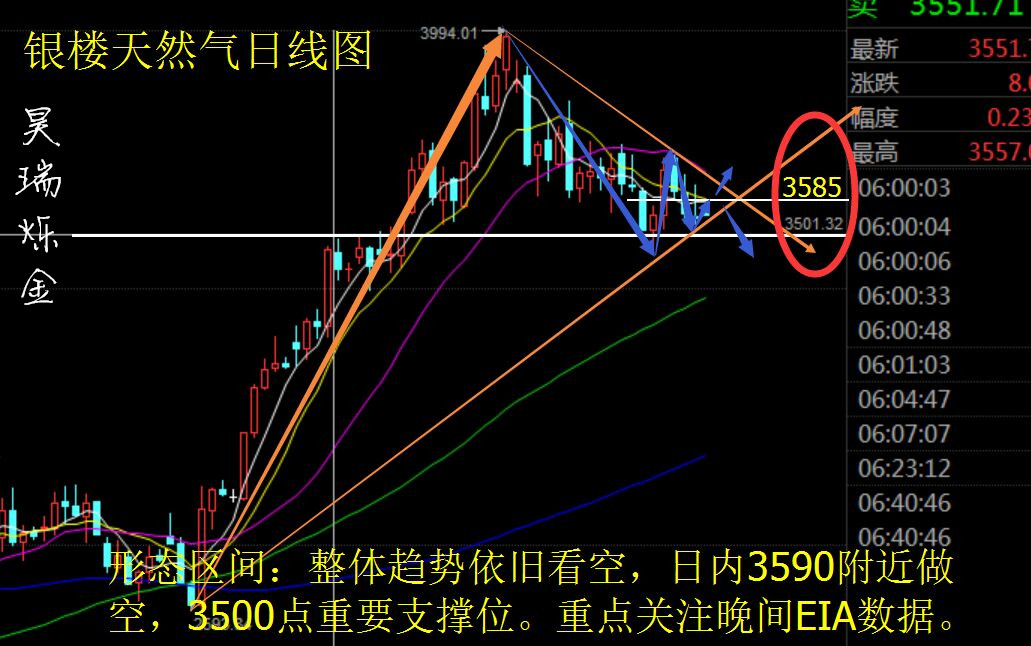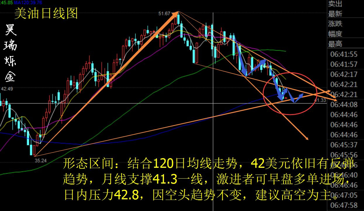 前言:生活不靠預(yù)期,投資不靠運氣。你為什么盈利,他為什么虧損?投資是金錢的游戲,更是智慧的博弈。機遇和風(fēng)險如影隨形,成敗只在一念間。智者,風(fēng)險也是機遇;愚者,機遇也是風(fēng)險。 市場回顧: 美國WTI原油9月期貨周三(7月27日)收跌0.73美元,或-1.71%,報41.91美元/桶。布倫特原油9月期貨周二收跌0.96美元,或-2.14%,報43.91美元/桶。周三(7月27日)據(jù)美國能源署最新公布的數(shù)據(jù)顯示,美國7月22日當(dāng)周EIA原油庫存增加167.1萬桶,該數(shù)據(jù)前值為-234.2萬桶,預(yù)測值為-200萬桶。并就此終結(jié)九連降。 數(shù)據(jù)公布后,美國9月WTI原油期貨合約北京時間7月27日22:30-22:31兩分鐘內(nèi)瞬間成交29185手(總價值逾12億美元合約)。油價短線大幅跳水,并完全回吐此前漲幅,美國WTI原油跌至4月21日以來最低點位,最低下探至41.68美元/桶,布倫特原油同樣觸及逾三個月低位,最低下探至43.73美元/桶。 數(shù)據(jù)還顯示,美國7月22日當(dāng)周EIA俄克拉荷馬州庫欣地區(qū)原油庫存減少23.2萬桶,預(yù)期減少50萬桶,前值增加18.9萬桶;EIA精煉廠設(shè)備利用率為92.4%,預(yù)期為93%,前值為93.2%。 此外,美國原油產(chǎn)品四周平均供應(yīng)量為2023.8萬桶/日,較去年同期增加0.7%;除卻戰(zhàn)略儲備的商業(yè)原油上周進(jìn)口843.7萬桶/日,較前一周增加30.3萬桶/日;上周美國國內(nèi)原油產(chǎn)量增加2.1萬桶至851.5萬桶/日;除卻戰(zhàn)略儲備的商業(yè)原油庫存增加167.1萬桶至5.211億桶,增幅0.1%。 【利空紛至沓來油價將跌向何處?】 市場原油價格持續(xù)下跌的重要三點:供應(yīng)過剩擔(dān)憂、需求不振,對沖基金大規(guī)模減持原油多倉,這些因素基本已讓原油多頭徹底死心。 供應(yīng)過剩:據(jù)情報機構(gòu)Genscape數(shù)據(jù)顯示,7月22日當(dāng)周,美國中部地區(qū)原油儲運集散地庫欣地區(qū)庫存增加了110萬桶。此外,美國原油鉆井平臺數(shù)量大增14口,及汽油為首的精煉油產(chǎn)品庫存仍居高不下,令投資者對市場再平衡的樂觀情緒減少。 供需方面:中國去年汽油需求增長了10%,今年僅以個位數(shù)增長。隨著駕駛季節(jié)接近尾聲,煉油商進(jìn)入設(shè)備維修季,汽油的需求將下降!耙驗榻(jīng)濟(jì)成長乏力,今年第三季全球石油需求增速不到上年同期的三分之一,”“來自經(jīng)濟(jì)合作暨發(fā)展組織的需求支撐力度已經(jīng)減弱,中國和印度的需求增長也已放緩! 對沖基金減持多倉:據(jù)美國商品期貨交易委員會數(shù)據(jù)顯示,在過去七周當(dāng)中,對沖基金有五周均增持NYMEX的WTI美原油空倉。美國9月WTI原油期貨合約北京時間7月27日22:30-22:31兩分鐘內(nèi)瞬間成交29185手(總價值逾12億美元合約)。 美原油: 目前技術(shù)形態(tài)區(qū)間已完全破位,整體趨勢依舊看空,日線來看MA120日均線向上牽引,日內(nèi)會有技術(shù)性修復(fù)反彈,短線關(guān)注42.85壓制,月線支撐41.28,建議日內(nèi)高空為主,可在41.3附近做短多 操作策略: 41.3附近做多,損41,目標(biāo)42.3 42.85附近做空,損43.1,目標(biāo)41.9 油價延續(xù)周二下跌趨勢后短暫反彈,受EIA大幅利空的影響,油價43.2一線瞬間下挫,最低至41.68美元,符合本人給出區(qū)間,且日內(nèi)給出1波多單,EIA給出1波空單,全部大幅獲利出局,恭喜跟上的朋友。更多操作建議,盤內(nèi)實時給出。 天然氣: 4小時來看,5日和10日均線再次拐頭向下,均線系統(tǒng)呈下行趨勢,布林帶逐漸收口,行情運行于布林中軌下方。MACD快慢線繼續(xù)下行,綠柱持續(xù)放量,KDJ指標(biāo)死叉向下發(fā)散運行。 操作策略: 3500-3510進(jìn)多,損3460,目標(biāo)3600-3620 3620-3640進(jìn)空,損3680,目標(biāo)3560-3530 周三天然氣在前一日跌勢下今晨小幅低開,后持續(xù)在3500點上方盤整,晚間伴隨金銀持續(xù)暴漲,最高達(dá)3623一線,正是本人早評所給區(qū)間,且日內(nèi)給出2波多單,1波空單,全部大幅獲利出局,恭喜跟上的朋友。天然氣昨日小幅收跌,空頭勢頭依舊,結(jié)合日線看,3585成為新的壓力位,3620為日內(nèi)強壓,建議高空為主,周線支撐位3500點。重點關(guān)注晚間有天然氣EIA數(shù)據(jù)。更多操作建議,盤內(nèi)實時給出。 注:筆者是湖南銀樓分析師,以上點位均以湖南銀樓點位為準(zhǔn),以上策略不具備實時性,建議僅供參考,更多實時進(jìn)場點位及解套策略詳詢昊瑞本人(投資有風(fēng)險,入市需謹(jǐn)慎) |