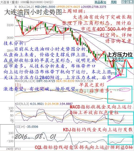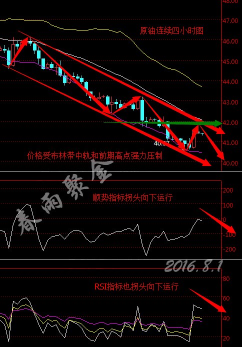 今日分析策略: 美國WTI原油9月期貨上周五(7月29日)收漲0.46美元,或1.12%,報41.60美元/桶,周線重挫6.11%,上月暴跌14.15%,為一年來最大單月跌幅。布倫特原油9月期貨上周五收跌0.77美元,或1.77%,報42.70美元/桶,周線下滑4.88%,上月重挫12.53%,創去年12月來最大單月跌幅。 日本央行的失望之舉和美國GDP數據的意外疲軟令美元慘遭重挫,為油價提供了強勁支撐,不過石油輸出國組織(OPEC)產量升至紀錄高位以及美國石油鉆井數的再度增加,依然令油價前景蒙上陰影。 美國油服公司貝克休斯(Baker Hughes)周五公布數據顯示,截至2016年7月29日當周美國石油活躍鉆井數增加3座至374座,為連續第五周增長,過去9周中的第8周增加,合計增加58座也成為2010年1月來最大增幅。 同時,全球經濟成長放緩和原油和成品油庫存過剩拖累油價持續走軟,在油價低迷的情況下,各大石油公司依舊不畏懼低油價拖累,仍在加大生產。 本周,萬眾矚目的美國非農就業報告也將粉墨登場,央行伴隨各大重要經濟數據來襲,料將在金融市場掀起巨浪。據彭博社周五(7月29日)公布的最新調查顯示,分析師及交易員依然看空下周NYMEX原油價格走勢。在接受調查的35位分析師中,看空21人(60%),看多7人(20%),看平7人(20%)。 技術面分析: 原油從四小時走勢圖來看,布林帶整體向下運行,上、中、下三軌一致向下,K線價格自下軌受支撐上行,欲觸碰中軌但受其壓制承壓下行,且前期低點不斷下移,目前價格在41美元上方整理。CCI順勢指標拐頭向下運行,RSI指標也拐頭向下運行。綜合來看,K線價格受布林帶中軌和前期高點強力壓制,下跌動能較足,預計今日早盤油價將震蕩下行。 8.1美原油操作建議: 今日早盤操作上建議逢高做空,42美元左右做空,40.50美元附近做多。(以上建議僅供參考,風險自擔) 大連重油技術面分析: 目前從大連油四小時走勢圖分析,從盤面上來看,價格受支撐反彈上漲,在底部收標準的造成之星形態,說明見底反彈,后市看多。從技術面分析來看,布林帶開口向上運行價格沿布林帶下軌向下運行,本次上漲關注上方壓力位2840附近,上方壓力未破,后市激進看空,反之有效突破,場外觀望。 操作建議: 今日大連油整體趨勢以逢高做空為主,以低多為輔。 日內阻力:2820/2870 日內支撐:2740/2700 激進者多單2770~2760區間內可以考慮擇機入場做多,止損2740下方,目標2800/2840。 穩健者多單2740~2730區間內可以考慮擇機入場做多,止損2700下方,目標2780/2820。 激進者空單2800~2790區間內可以考慮擇機入場做空,止損2830上方,目標2760/2730。 穩健者空單2840~2830區間內可以考慮擇機入場做空,止損2870上方,目標2800/2770。 支撐、阻力點位分析: 美元指數 第一支撐:95.40;第二支撐:95.20; 第一阻力:95.80;第二阻力:96.20; 現貨黃金(美元/盎司) 第一支撐:1340;第二支撐:1335; 第一阻力:1355;第二阻力:1360; 現貨白銀(美元/盎司) 第一支撐:20.20;第二支撐:20.10; 第一阻力:20.40;第二阻力:20.50; (以上文章由春雨原創,轉載請注明出處。溫馨提示,投資有風險,入市需謹慎。以上僅代表春雨個人觀點,不作操作依據,據此操作風險自擔) |
