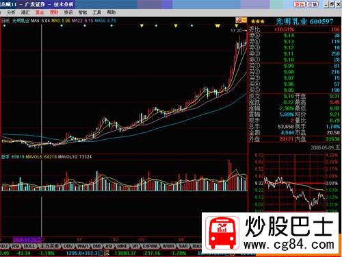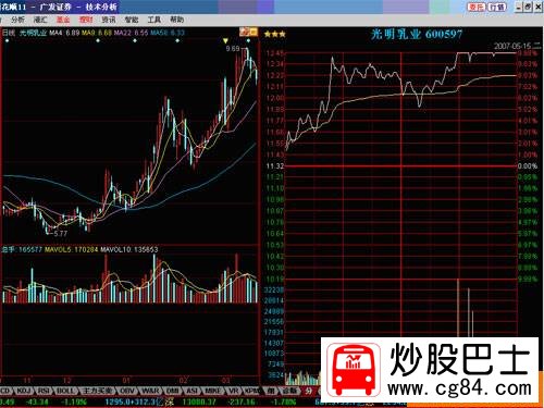 這種操作手法的個股有很多,比較典型的是2007年5月中旬600597光明乳業。