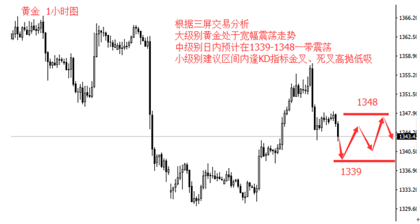 黃金走勢方面,4小時的指標顯示,目前處于大級別寬幅震蕩態勢,方向性較為不明確,似乎大級別可漲可跌。日內小級別看,昨日下跌后,今天預計偏于1339-1348一帶消化下跌動能,建議區間內高拋低吸。 財經日歷: 20:30