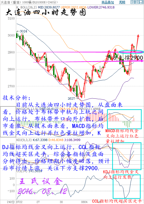 人到了一定的年齡,將不再盤點這一生獲利了什么,而是遺憾曾經錯過了什么。別拿自己的盈虧與別人比,你根本不知道別人經歷過什么,有些行情錯過了道歉也無法挽回,盈利的時候一定要學會放肆,錯誤的時候卻要及時低頭,風險就像一只野獸要懂得控制,利潤卻像一匹野馬要偶爾放任。 美國WTI原油9月期貨周四(8月11日)收漲1.78美元,或4.27%,報43.49美元/桶。布倫特原油10月期貨周四收漲1.99美元,或4.52%,報46.04美元/桶。沙特能源部長今日放話稱下月產油國會議上將討論穩定油市的方案,令原油多頭大受鼓舞,同時國際能源署(IEA)月報也偏向利多,布油重返46美元/桶關口。美國WTI原油期貨價格盤中最高觸及43.86元/桶,布倫特原油期貨價格盤中最高觸及46.30美元/桶。 大連油技術分析: ![]() 技術分析: 目前從大連油四小時走勢圖,從盤面來看,價格處于布林帶中軌與上軌之間向上運行,布林帶開口向外擴散,后市看漲。從技術面來看,MACD指標均線金叉向上運行并紅色量柱增加,KDJ指標均線金叉向上運行,CCL指標均線超買區走平,綜合各指標及盤面分析得出,價格短期小幅度回落,預計后市行情上漲,關注下方支撐2900. 操作建議: 今日大連油整體趨勢以逢低做多為主,以高空為輔。 日內阻力:2950/2980 日內支撐:2900/2850 激進者空單2920~2930區間內可以考慮擇機入場做空,止損2960上方,目標2900/2880 穩健者空單2980~2990區間內可以考慮擇機入場做空,止損3020上方,目標2950/2910。 激進者多單2900~2910區間內可以考慮擇機入場做多,止損2870下方,目標2950/2980。 穩健者多單2850~2860區間內可以考慮擇機入場做多,止損2820下方,目標2900/2930。 以上操作建議僅供參考、投資有風險、操作需謹慎。 【以上建議出自中匯天融分析部,以實盤操作建議為準】 再生銀技術分析: ![]() 技術分析: 目前從再生銀四小時走勢圖,從盤面來看,價格處于布林中軌向下運行布林帶開口收攏,下方關注4250,從技術面來看,MACD指標均線收攏紅色量柱減少,KDJ指標均線死叉向下運行,CCL指標均線由上向下穿破0軸。綜合各指標及盤面分析得出,價格短期小幅度上漲,下方關注4250支撐位,預計后市行情下跌。 操作建議: 今日再生銀整體趨勢以逢高做空為主,以低多為輔。 日內阻力:4300/4350 日內支撐:4250/4200 激進者空單4300~4310區間內可以考慮擇機入場做空,止損4340上方,目標4280/4250。 穩健者空單4350~4340區間內可以考慮擇機入場做空,止損4380上方,目標4300/4270。 激進者多單4200~4210區間內可以考慮擇機入場做多,止損4170下方,目標4250/4280。 穩健者空單4160~4150區間內可以考慮擇機入場做多,止損4120下方,目標4200/4230。 以上操作建議僅供參考、投資有風險、操作需謹慎。 【以上建議出自中匯天融分析部,以實盤操作建議為準】 今日重點關注的財經數據及事件: 14:00德國第二季度未季調GDP年率初值 14:00德國7月CPI月率終值 17:00歐元區第二季度GDP年率修正值 17:00歐元區6月工業產出月率 20:30美國7月零售銷售月率 20:30美國7月PPI月率 22:00美國8月密歇根大學消費者信心指數初值 22:00美國6月商業庫存月率 22:00美國8月密歇根大學消費者信心指數初值 對投資(原油、白銀等)感興趣卻無從下手或者已經在接觸卻并不理想的朋友,添加王氏議金分析師微信號wangkangjun018(長按可以直接復制微信號),獲取更多投資實時資訊、行情走勢分析,交易策略指導、歡迎關注微信公眾號“wkj018” |