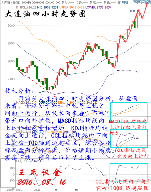 變心是本能,忠誠是選擇。不是在最好的時光遇見你,而是遇見你就是最好的時光。愛就認真、走別傷害。很多時候大人干著孩子般的事,一個關于好男人不斷從光環中消失的故事,一段看似其貌不揚與美麗校花的橋段,收尾總是如此的不堪,成了屁民茶后的談資,主要的原因就是:周末、太閑。投資也是一樣,頻率的更換導師,最終傷害的就是資金,當你選擇我的時候,就是最好的時光。 美國WTI原油9月期貨周一(8月15日)收漲1.25美元,或2.81%,報45.74美元/桶。布倫特原油10月期貨周一收漲1.38美元,或2.94%,報48.35美元/桶。日內美元受阻為油價提供了一定支撐,同時俄羅斯能源部長的表態令投資者加大了產油國限產壓住,軋空行情高漲令油價延續漲勢。美國WTI原油期貨價格盤中最高觸及45.87美元/桶,布倫特原油期貨價格盤中最高觸及48.46美元/桶。 基本面利好因素: 沙特能源部長法利赫(Khalid al-Falih)近期表示,將在下個月與OPEC和非OPEC產油國會面,討論油市問題,凍產計劃再次浮上水面。國際能源論壇將于9月26日-28日在阿爾及利亞舉行,卡塔爾油長此前曾表示OPEC成員國將在論壇會議間隙展開討論。同時俄羅斯能源部長諾瓦克(Alexander Novak)周一(8月15日)在接受沙特《中東日報》采訪時稱,如果有必要,俄羅斯就與石油輸出國組織(OPEC)合作穩定油價持開放態度,這令市場信心大受鼓舞。 交易員指出,中國7月原油產量下降8.1%至1672萬噸,為5年來最低水平,這對于原油市場是一大利好,因這或許表明亞洲最大經濟體將進口更多原油。 IEA月報稱,世界各地的煉廠第三季度將加工創紀錄的原油,在今年第二季度煉廠原油需求創下2009年以來最大跌幅之后,本季度需求將反彈。IEA同時,石油輸出國組織(OPEC)成員國之間互相競爭,以保障市場份額,在這種情況下,即便沙特、科威特和阿聯酋原油產量位于歷史新高,但煉廠需求的回升將有助于吸收原油庫存。整體而言,IEA此次公布的月報中利多因素大于利空因素,因此對油價提供了強勁支撐。 美國能源信息署(EIA)最新數據顯示,截至8月5日當周,美國汽油庫存減少280.7萬桶,至2.3538億桶,市場預估為減少106.3萬桶,而精煉油庫存減少195.9萬桶,至1.512億桶,市場預估為增加51.3萬桶,精煉油庫存降幅為5月13日當周以來最大。此外,美國國內原油產量減少1.5萬桶至844.5萬桶/日。 尼日利亞又出現了一個新的武裝組織,聲稱已炸毀了該國的重要輸油管,并警告更多的襲擊將陸續有來。尼日利亞當地激進分子曾經在過去數月內襲擊原油和能源設施,這導致產量大減,目前已經削減了近70萬桶/日,7月出口量仍大幅低于2016年初的每日200萬桶水平。此外,由于哈里加港抗議事件,7月份利比亞產量小幅下降,因主要油田Sarir運營中斷。委內瑞拉的供應則因現金緊缺承受下行壓力,7月產量也進一步下滑,今年可能出現14年來最嚴重的產量下滑。 大連油技術分析: 技術分析: 目前從大連油四小時走勢圖分析,從盤面來看,價格處于布林中軌與上軌之間向上運行,從技術面來看,布林帶開口向外擴散,MACD指標均線向上運行紅色量柱增加,KDJ指標均線金叉向上運行,CCL指標均線由下向上突破+100軸到達超買區,綜合各指標及盤面分析得出,價格短期小幅度震蕩下跌,預計后市行情上漲。 操作建議: 今日大連油整體趨勢以逢低做多為主,以高空為輔。 日內阻力:3100/3130 日內支撐:3030/3000 激進者空單3100~3110區間內可以考慮擇機入場做空,止損3140上方,目標3080/3050。 穩健者空單3160~3170區間內可以考慮擇機入場做空,止損3200上方,目標3130/3100。 激進者多單3050~3040區間內可以考慮擇機入場做多,止損3010下方,目標3080/3110。 穩健者多單3010~3000區間內可以考慮擇機入場做多,止損2970下方,目標3050/3080。 以上操作建議僅供參考、投資有風險、操作需謹慎。 【以上建議出自中匯天融分析部,以實盤操作建議為準】 再生銀技術分析: 技術分析: 目前從再生銀四小時走勢圖分析,從盤面來看,價格處于布林中軌與下軌之間運行,從技術面來看,布林帶開口收攏走平,MACD指標均線收攏走平綠色量柱減少,KDJ指標均線走平粘合有金叉跡象,CCL指標均線超賣區拐頭向上運行,綜合各指標及盤面分析得出,價格短期小幅度震蕩上漲,預計后市行情下跌。 操作建議: 今日再生銀整體趨勢以逢高做空為主,以低多為輔。 日內阻力:4260/4300 日內支撐:4200/4150 激進者空單4250~4260區間內可以考慮擇機入場做空,止損4290上方,目標4220/4180。 穩健者空單4300~4290區間內可以考慮擇機入場做空,止損4330上方,目標4260/4230。 激進者多單4210~4220區間內可以考慮擇機入場做多,止損4190下方,目標4250/4280。 穩健者多單4190~4180區間內可以考慮擇機入場做多,止損4150下方,目標4230/4260。 以上操作建議僅供參考、投資有風險、操作需謹慎。 【以上建議出自中匯天融分析部,以實盤操作建議為準】 今日重點關注的財經數據及事件: 09:30澳洲聯儲公布8月貨幣政策會議紀要。 16:30英國7月CPI月率 16:30英國7月零售物價指數月率 17:00德國8月ZEW經濟景氣指數 17:00歐元區6月季調后貿易帳(億歐元) 17:00歐元區8月ZEW經濟景氣指數 20:30美國7月季調后CPI月率【重點關注】 20:30美國7月新屋開工總數年化(萬戶)【重點關注】 20:30美國7月營建許可總數(萬戶)【重點關注】 21:15美國7月工業產出月率【重點關注】 三窮三富過到老,十年興敗多少人,誰人背后無人說,誰人背后不說人!時間讓我們看