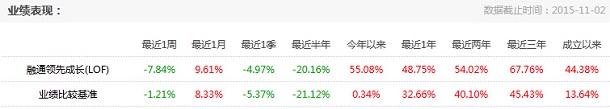 今天基金凈值 一、融通領先成長混合概況基金全稱:融通領先成長混合型證券投資基金(LOF) 基金簡稱:融通領先成長混合(LOF) 基金代碼:161610(主代碼) 基金類型:混合型 發行日期:2007年05月11日 成立日期/規模:2007年04月30日 / 5.000億份 資產規模:69.47億元(截止至:2015年09月30日) 份額規模:30.0341億份(截止至:2015年11月02日) 基金管理人:融通基金 基金托管人:建設銀行 基金經理人:劉格菘、伍文友 成立來分紅:每份累計0.15元(4次) 管理費率:1.50%(每年) 托管費率:0.25%(每年) 銷售服務費率:---(每年) 最高認購費率:---(前端) 最高申購費率:1.50%(前端) 最高贖回費率:0.50%(前端) 業績比較基準:滬深300指數收益率×80%+中信標普全債指數收益率×20% 跟蹤標的:該基金無跟蹤標的