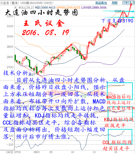 投資最遺憾的,莫過于輕易地放棄了不該放棄的,固執地堅持了不該堅持的。強勢人格是內在的傲骨,而不是外在的傲氣,成長的路沒有捷徑,只是頓悟的早晚,人生最怕的不是錯了,而是明知是個坑還總幻象奇跡,把偶發事件當成了憧憬對象,真正的高手就如我一樣清晰的知道狙擊的時擊和方向。 美國WTI原油9月期貨周四(8月18日)收漲1.43美元,或3.06%,報48.22美元/桶,自8月初低點累計反彈22%,收盤后正式進入牛市。布倫特原油10月期貨周四收漲1.04美元,或2.09%,報50.89美元/桶。市場對下月產油國會議達成產量限制協議的押注仍在增加,大量的空頭回補操作幫助油價進一步走高,而美元承壓回落也為油價提供了一定支撐。美國WTI原油期貨價格盤中最高觸及48.38美元/桶,布倫特原油期貨價格盤中最高觸及51.05美元/桶。 基本面利好因素: 由于美聯儲7月會議紀要意外不及預期鷹派且日內公布的經濟數據良莠不齊,美元指數延續跌勢至七周低位。雖然截至8月13日當周首次申請失業救濟人數減少4000人,降至26.2萬人,創下一個月以來最低水平,但費城聯儲8月新訂單指數,以及就業分項全線暴跌,尤其是就業分項指數更是創下7年以來的低位。美元承壓回落為油價提供了一定支撐。 美國能源信息署(EIA)數據顯示,截至8月12日當周美國原油庫存減少250.8萬桶,市場預估為增加52.2萬桶。美國EIA原油庫存結束連續三周的增長趨勢,并錄得7月8日當周以來最大降幅。美國上周汽油庫存減少272.4萬桶,市場預估為減少163.8萬桶,創下四周以來最大降幅。同時庫欣庫存減少72.4萬桶,為兩周以來最大降幅。不過上周美國國內原油產量增加15.2萬桶至859.7萬桶/日,但依然連續19周維持在900萬桶/日關口下方。此外,美國精煉油庫存增加193.9萬桶,市場預估為減少74.2萬桶,為九周以來最大增幅。 沙特能源部長法利赫(Khalid al-Falih)近期表示,將在下個月與OPEC和非OPEC產油國會面,討論油市問題,凍產計劃再次浮上水面。國際能源論壇將于9月26日-28日在阿爾及利亞舉行,卡塔爾油長此前曾表示OPEC成員國將在論壇會議間隙展開討論。同時俄羅斯能源部長諾瓦克(Alexander Novak)周一(8月15日)在接受沙特《中東日報》采訪時稱,如果有必要,俄羅斯就與石油輸出國組織(OPEC)合作穩定油價持開放態度,這令市場信心大受鼓舞。 尼日利亞又出現了一個新的武裝組織,聲稱已炸毀了該國的重要輸油管,并警告更多的襲擊將陸續有來。尼日利亞當地激進分子曾經在過去數月內襲擊原油和能源設施,這導致產量大減,目前已經削減了近70萬桶/日,7月出口量仍大幅低于2016年初的每日200萬桶水平。此外,由于哈里加港抗議事件,7月份利比亞產量小幅下降,因主要油田Sarir運營中斷。委內瑞拉的供應則因現金緊缺承受下行壓力,7月產量也進一步下滑,今年產量恐創14年來最大降幅。 IEA月報稱,世界各地的煉廠第三季度將加工創紀錄的原油,在今年第二季度煉廠原油需求創下2009年以來最大跌幅之后,本季度需求將反彈。IEA同時,石油輸出國組織(OPEC)成員國之間互相競爭,以保障市場份額,在這種情況下,即便沙特、科威特和阿聯酋原油產量位于歷史新高,但煉廠需求的回升將有助于吸收原油庫存。整體而言,IEA此次公布的月報中利多因素大于利空因素,因此對油價提供了強勁支撐。 大連油技術分析: 技術分析: 目前從大連油四小時走勢圖分析,從盤面來看,價格昨日收盤小陽線,預示上方承壓短期會有一波回落,從技術面來看,布林帶開口向外擴散,MACD指標均線粘合再次發散向上運行紅色量柱增加,KDJ指標均線走平收攏,CCL指標均線超買區走平,綜合各指標及盤面分析得出,價格短期小幅度回落,預計后市行情上漲。 操作建議: 今日大連油整體趨勢逢高做空為主,以低多為輔。 日內阻力:3270/3310 日內支撐:3200/3170 激進者空單3260~3270區間內可以考慮擇機進場做空,止損3300上方,目標3230/3200。 穩健者空單3300~3310區間內可以考慮擇機進場做空,止損3340上方,目標3270/3240。 激進者多單3200~3210區間內可以考慮擇機進場做多,止損3170下方,目標3240/3270。 穩健者多單3170~3160區間內可以考慮擇機進場做多,止損3130下方,目標3200/3240。 以上操作建議僅供參考、投資有風險、操作需謹慎。 【以上建議出自中匯天融分析部,以實盤操作建議為準】 再生銀技術分析: 技術分析: 目前從再生銀四小走勢圖分析,從盤面分析來看,價格處于三角形整理形態,后市突破任意一方,將延續那個方向運行,從技術面來看,布林帶收攏向下運行,價格處于布林帶中軌與下軌之間,MACD指標均線走平收攏,KDJ指標均線金叉向上運行走平,CCL指標均線0軸附近拐頭向下運行。綜合各指標及盤面分析得出,價格短期震蕩,預計后市行情下跌。 操作建議: 今日再生銀整體趨勢以逢高做空為主,以低多為輔。 日內阻力:4230/4260 日內支撐:4150/4100 激進者空單4190~4200區間內可以考慮擇機入場做空,止損4230上方,目標4160/4130。 穩健者空單4230~4220區間內可以考慮擇機入場做空,止損4260上方,目標4180/4150。 激進者多單4130~4140區間內可以考慮擇機入場做多,止損4100下方,目標4170/4200。 穩健者多單4100/4110區間內可以考慮擇機入場做多,止損4070下方,目標4150/4180。 以上操作建議僅供參考、投資有風險、操作需謹慎。 【以上建議出自中匯天融分析部,以實盤操作建議為準】 今日重點關注財經數據: 14:00德國7月PPI月率 20:30加拿大7月CPI月率 20:3