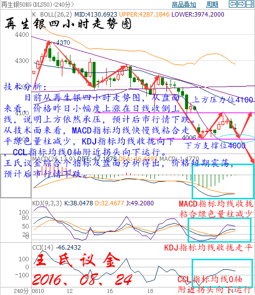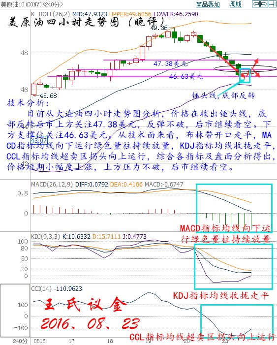 美國WTI原油10月期貨周二(8月23日)收漲0.69美元,或1.46%,報(bào)48.10美元/桶。布倫特原油10月期貨周二收漲0.80美元,或1.63%,報(bào)49.96美元/桶。有消息稱伊朗發(fā)出信號,表示愿意支持有關(guān)提升油價(jià)的集體行動(dòng)。該信號有助于重啟下個(gè)月有關(guān)凍產(chǎn)協(xié)議的會(huì)談,原油多頭信心也大受鼓舞,不過遭受嚴(yán)重供應(yīng)中斷的產(chǎn)油國利比亞、伊拉克和尼日利亞上周都開始顯示出擴(kuò)大生產(chǎn)的跡象,恐將令剛剛開始的復(fù)蘇勢頭遭到遏制。美國WTI原油期貨價(jià)格盤中最高觸及48.31美元/桶,布倫特原油期貨價(jià)格盤中最高觸及50.20美元/桶。 美國石油協(xié)會(huì)(API)周二(8月23日)公布數(shù)據(jù)顯示,8月19日當(dāng)周API原油庫存意外大增446萬桶。數(shù)據(jù)公布后油價(jià)漲幅進(jìn)一步縮窄,美油短線下跌0.27美元。 具體數(shù)據(jù)顯示,美國8月19日當(dāng)周API原油庫存增加446萬桶,預(yù)期減少85萬桶,前值減少134萬桶;API汽油庫存減少217萬桶,預(yù)期減少125萬桶,前值減少45萬桶;API精煉油庫存減少83萬桶,預(yù)期增加65萬桶,前值增加54萬桶。另外,截止8月19日當(dāng)周美國API庫欣地區(qū)原油庫存增加41.7萬桶,預(yù)期減少68萬桶,前值減少68萬桶。 大連油技術(shù)分析: 技術(shù)分析: 目前從大連油四小時(shí)走勢圖分析,從盤面來看,價(jià)格昨日底部反轉(zhuǎn)向上運(yùn)行收在布林帶中軌上方,說明價(jià)格短期看多。從技術(shù)面來看,布林帶開口有向外擴(kuò)散的跡象,MACD指標(biāo)均線收攏走平綠色量柱減少,KDJ指標(biāo)均線金叉向上運(yùn)行,CCL指標(biāo)均線穿破0軸到達(dá)向上運(yùn)行,綜合各指標(biāo)及盤面分析得出,價(jià)格短期震蕩,下方支撐不破,預(yù)計(jì)后市行情繼續(xù)看多。 操作建議: 今日大連油整理操作趨勢以逢高做空為主,以低多為輔。 日內(nèi)阻力:3230/3270 日內(nèi)支撐:3160/3110 激進(jìn)者空單3190~3200區(qū)間內(nèi)可以考慮擇機(jī)入場做空,止損3230上方,目標(biāo)3150/3110。 穩(wěn)健者空單3240~3250區(qū)間內(nèi)可以考慮擇機(jī)入場做空,止損3280上方,目標(biāo)3200/3160。 激進(jìn)者多單3160~3170區(qū)間內(nèi)可以考慮擇機(jī)入場做多,止損3130下方,目標(biāo)3190/3230。 穩(wěn)健者多單3110~3100區(qū)間內(nèi)可以考慮擇機(jī)入場做多,止損3080下方,目標(biāo)3130/3160。 以上操作建議僅供參考、投資有風(fēng)險(xiǎn)、操作需謹(jǐn)慎。 【以上建議出自中匯天融分析部,以實(shí)盤操作建議為準(zhǔn)】 再生銀技術(shù)分析: 技術(shù)分析: 目前從再生銀四小時(shí)走勢圖,從盤面來看,價(jià)格昨日小幅度上漲在日線收倒丄線,說明上方依然承壓,預(yù)計(jì)后市行情下跌。從技術(shù)面來看,MACD指標(biāo)均線快慢線粘合走平綠色量柱減少,KDJ指標(biāo)均線收攏向下,CCL指標(biāo)均線0軸附近拐頭向下運(yùn)行。王氏議金綜合個(gè)指標(biāo)及盤面分析得出,價(jià)格短期震蕩,預(yù)計(jì)后市行情下跌。 操作建議: 今日再生銀整理操作趨勢以逢高做空為主,以低多為輔。 日內(nèi)阻力:4070/4100 日內(nèi)支撐:4000/3970 激進(jìn)者空單4070~4080區(qū)間內(nèi)可以考慮擇機(jī)入場做空,止損4110上方,目標(biāo)4040/4000。 穩(wěn)健者空單4100~4090區(qū)間內(nèi)可以考慮擇機(jī)入場做空,止損4130上方,目標(biāo)4060/4030。 激進(jìn)者多單4030~4040區(qū)間內(nèi)可以考慮擇機(jī)入場做多,止損4000下方,目標(biāo)4060/4090。 穩(wěn)健者多單4000~3990區(qū)間內(nèi)可以考慮擇機(jī)入場做多,止損3960下方,目標(biāo)4050/4090。 以上操作建議僅供參考、投資有風(fēng)險(xiǎn)、操作需謹(jǐn)慎。 【以上建議出自中匯天融分析部,以實(shí)盤操作建議為準(zhǔn)】 今日可以關(guān)注的財(cái)經(jīng)數(shù)據(jù): 04:30美國至8月19日當(dāng)周API原油庫存(萬桶)【重點(diǎn)關(guān)注】 14:00德國第二季度未季調(diào)GDP年率終值 21:00美國6月FHFA房價(jià)指數(shù)月率 22:00美國7月成屋銷售總數(shù)年化(萬戶) 22:30美國至8月19日當(dāng)周EIA原油庫存(萬桶)【重點(diǎn)關(guān)注】 昨日晚間行情回顧: 目前從大連油四小時(shí)走勢圖分析,價(jià)格在收出錘頭線,底部反轉(zhuǎn)后市上方關(guān)注47.38美元,反彈不破,后市繼續(xù)看空。下方支撐位關(guān)注46.63美元。從技術(shù)面來看,布林帶開口走平,MACD指標(biāo)均線向下運(yùn)行綠色量柱持續(xù)放量,KDJ指標(biāo)均線收攏走平,CCL指標(biāo)均線超賣區(qū)拐頭向上運(yùn)行,綜合各指標(biāo)及盤面分析得出,價(jià)格短期小幅度上漲,上方壓力不破,后市繼續(xù)看空。 王老師寄語: 在這市場上面,我們做交易,一定要有八面玲瓏的思維,不僅僅是需要技術(shù)面的支持,合理有效的掌控消息面也是極其的重要。以趨勢做單,不求單單盈利,只求穩(wěn)健盈利、穩(wěn)健給單,制定好做單方案,掌握好趨勢抓住每波大行情,獲得一個(gè)長期穩(wěn)健的盈利! 本文僅代表王氏議金個(gè)人觀點(diǎn),不同平臺注意價(jià)格的換算,撰稿人:王氏議金! |