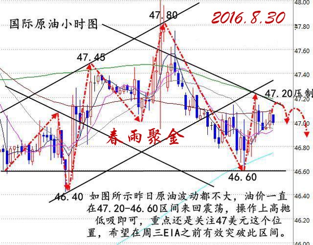 周一(8月29日)國際油價震蕩走弱,因上周末伊拉克和伊朗均強調不愿意放棄市場份額,令市場對9月產油國達成凍產的預期顯著降溫;美原油關注上周低點46.5美元附近的支撐,一旦跌破該位置油價料將加速下行。 主席耶倫、副主席費希爾的表態后,巴克萊銀行稱耶倫的措辭已經盡可能地強硬,符合該行9月加息一次的預期,若8月非農人口維持穩健增長,料美聯儲將在9月行動;美銀美林則認為耶倫的演講加大了9月加息的可能性,但該行仍認為美聯儲10月才可能加息。 歐佩克另一石油生產大國尼日利亞也會堅決反對將產量凍結在目前的水平,因該國產量受尼日爾河三角洲地區的武裝組織破壞而大幅下跌了超過50萬桶/日。盡管關于凍產的各種傳聞滿天飛,但是曾參與4月凍產協議構建的俄羅斯這次似乎也小心翼翼,既不阻礙凍產的推進,也不阻止不靠譜的謠言流傳。目前油價方面暫無利多消息支撐。 國際原油行情分析: 國際原油昨日亞市早盤中短線受挫,歐盤時段原油在47美元附近來回震蕩;最低下探至46.78美元;美盤時段最低下探至46.62,從四小時圖來看:KDJ三線目前趨勢平行中,且K線已經形成拐頭趨勢;MACD雙線緩慢粘合中,多空能量爭奪中;綜合來看,下方多次試探46.50支撐位沒有突破,形成比較強力的支撐位,油價日內行情預測區間震蕩,操作策略區間內高拋低吸即可!重點關注本周星期三EIA原油庫存數據和本周五大非農數據,這兩波大行情直接決定原油近期后市的大體走勢! 大交所大連油行情分析: