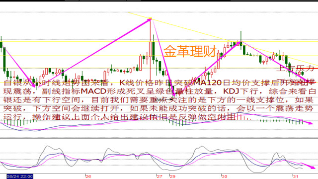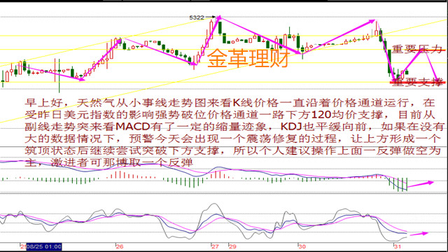 前言: 當投資一直虧損、套單,沒有人給出合理的指導,在投資路上迷茫了很久,感覺看透了,感覺賺不到什么錢了的時候,你不妨抬頭仰望一下天空,想一想別人為什么成功了,而你卻不行?你不妨思考一下也許是方法不對,也許是沒有找到合適的老師,也或許是你沒有堅持下去?看看金革理財對今日白銀和天然氣,技術上的分析和操作建議: 基本面分析: 周一美指漲至三周高位,另外美聯儲官員們近期發表言論后金融市場對其今年加息幾率的預期增加,令金價承壓;有分析師認為美聯儲今年加息一次的幾率超80%,若周五非農數據搶眼,9月加息的概率更大。不過金價或已處在低位,金革認為美元漲勢必將在9月會后結束,因為美聯儲不會在9月加息。 美國8月諮商會消費者信心指數好于預期,錄得自2015年9月來最高水平,暗示家庭消費支出仍將作為關鍵因素支撐美國經濟增長;自今年二季度以來,消費支出以2014年來最快速度增長,抵消了商業和政府支出的疲軟對經濟的拖累影響。 全球最大黃金ETF--SPDR GOLD TRUST持倉較上日減少1.19噸,當前持倉量為955.40噸。 天然氣行情分析和操作建議: 天然氣從小事線走勢圖來看K線價格一直沿著價格通道運行,在受昨日美元指數的影響強勢破位價格通道一路下方120均價支撐,目前從副線走勢突來看MACD有了一定的縮量跡象,KDJ也平緩向前,如果在沒有大的數據情況下,預警今天會出現一個震蕩修復的過程,讓上方形成一個筑頂狀態后繼續嘗試突破下方支撐,所以金革理財建議操作上面一反彈做空為主,激進者可那博取一個反彈。 操作建議: 5085一線不破,可多單進場,止損默認,目標看5146,破位看5190 5146一線不破,空單進場,止損默認,目標看5085,破位看4960 白銀行情分析和操作建議: 白銀從小時線走勢圖來看,K線價格昨日突破MA120日均價支撐后開始出現震蕩,副線指標MACD形成死叉呈綠色量柱放量,KDJ下行,綜合來看白銀還是有下行空間,目前我們需要重點關注的是下方的一線支撐位,如果突破,下方空間會繼續打開,如果未能成功突破的話,會以一個震蕩走勢運行,金革理財建議反彈做空為主。 操作建議: 3920壓力不破,可嘗試空單進場,止損默認,目標看3890,破位持有 3890一線支撐不破,多單進場,止損默認,目標看3920,破位持有 投資有風險,入市需謹慎,建議僅供參考,請嚴格帶好止損止盈,盈虧自擔 文/金革理財 |