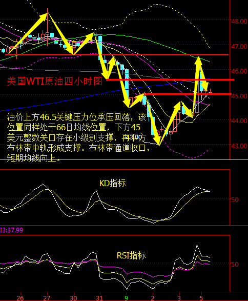 基本面分析: 周一(9月5日)美國WTI原油10月期貨交投于45.17美元附近,上漲2.31%。布倫特原油11月期貨周一收漲0.8美元,或1.71%,報47.63美元/桶。美國WTI原油期貨價格盤中最高觸及46.53美元/桶,布倫特原油期貨價格盤中最高觸及49.38元/桶。 在G20峰會期間,俄羅斯與沙特發表聯合聲明稱,將組建數據監測工作組,兩國石油部長將于11月OPEC會議期間進行會談,兩國能源小組將于10月召開會議。俄羅斯能源部長Novak則稱,俄羅斯與沙特討論了可能進行的凍產方案,俄羅斯已經準備好加入凍產決定。 在上述消息傳出后,國際油價短線暴力拉升逾4%,拉升幅度均超過2美元。 不過上周六凌晨公布的鉆井數再次增加,數據顯示,截至2016年9月2日當周美國石油活躍鉆井數增加1座至407座,過去10周內第9周錄得增加。美國石油和天然氣活躍鉆井總數增加8座至497座,較去年同期減少367座。這對于油價后市來說并不算好消息。 原油技術面分析: 美國WTI原油從四小時走勢圖來看,油價上方46.5關鍵壓力位承壓回落,該位置同樣處于66日均線位置,下方45美元整數關口存在小級別支撐,再下方布林帶中軌形成支撐。布林帶通道收口,短期均線向上。 附圖KD指標形成死叉向下運行;RSI指標三線由走平轉為向下趨勢。 綜合來看,短線上油價下行概率較高,但日內依舊為看多趨勢,操作上建議逢低位買入多單。 9.6美原油操作策略:逢低做多。 44.5美元附近做多,目標看向45.5美元附近,止損在44.1美元下方; 46美元下方附近做空,目標看向45美元上方,止損在46.3美元上方。 白銀技術面分析: 現貨白銀從四小時走勢圖來看,銀價在觸及上方布林帶上軌后漲勢變緩,目前K線價格處于布林帶上軌下方運行,布林帶通道開口,中、上軌向上。附圖MACD指標快慢線在零軸上方繼續向上運行,但紅色動能柱有縮量跡象;附圖KDJ指標三線交叉向下運行。 綜合來看,預計亞盤時段白銀價格將震蕩下行,操作上建議逢高位做空為主。 現貨白銀操作策略: 19.7美元下方做空,目標看向19.3美元附近,止損在19.75美元上方; 19.3美元附近做多,目標看向19.5美元上方,止損在19.2美元下方。 今日重點關注數據: 12:30 澳洲聯儲公布利率決議及政策聲明 14:00 德國7月季調后工廠訂單數據 17:00 歐元區二季度GDP 22:00 美國8月ISM非制造業指數 (以上文章由春雨原創,轉載請注明出處。溫馨提示,投資有風險,入市需謹慎。以上僅代表春雨個人觀點,不作操作依據,據此操作風險自擔) |