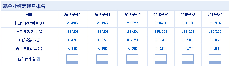 基金全稱:華安現金富利投資基金 基金簡稱:華安現金富利貨幣A 基金代碼:040003(前端) 基金類型:貨幣型 發行日期:2003年12月14日 成立日期/規模:2003年12月30日 / 42.537億份 資產規模:18.96億元(截止至:2015年03月31日) 份額規模:18.9584億份(截止至:2015年03月31日) 基金管理人:華安基金 基金托管人:工商銀行 基金經理人:賀濤、孫麗娜 成立來分紅:每份累計0.00元(0次) 管理費率:0.33%(每年) 托管費率:0.10%(每年) 銷售服務費率:0.25%(每年) 最高認購費率:---(前端) 最高申購費率:0.00%(前端) 最高贖回費率:0.00%(前端) 業績比較基準:當期銀行個人活期儲蓄利率(稅前)