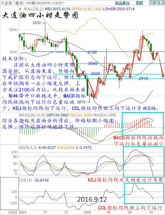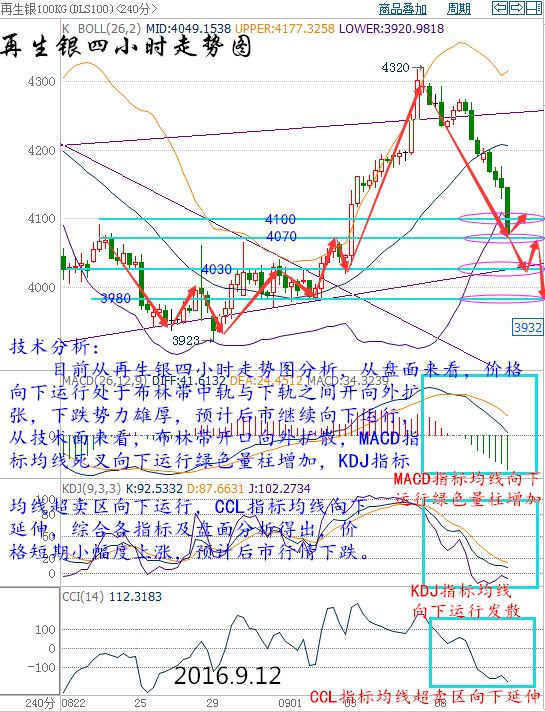 北京時(shí)間周六(9月10日)01:00公布的美國(guó)至9月9日當(dāng)周的石油鉆井總數(shù)較上周增加7口至414口,為7個(gè)月以來(lái)最高,預(yù)期值為407口。石油鉆井?dāng)?shù)已連續(xù)11周錄得增加。由于當(dāng)日油價(jià)跌幅已達(dá)3%,鉆井?dāng)?shù)據(jù)公布后,油價(jià)在震蕩中下跌。 上周油價(jià)難逃“黑色星期五”的魔掌暴跌約4%,因被風(fēng)暴推遲進(jìn)口的原油流入,本周料美國(guó)庫(kù)存將劇增;加之美元走強(qiáng)鉆井增加、原油凈多頭連續(xù)減持,油價(jià)仍將承壓。 阿爾及利亞國(guó)家新聞機(jī)構(gòu)(APS)上周六(9月10日)援引該國(guó)能源部長(zhǎng)Noureddine Bouterfa的話稱,石油輸出國(guó)組織(OPEC)和非OPEC產(chǎn)油國(guó)就穩(wěn)定油市以支撐油價(jià)的必要性達(dá)成一致。 Bouterfa是在上周五(9月9日)晚些時(shí)候在巴黎與沙特能源部長(zhǎng)法力赫及OPEC秘書(shū)長(zhǎng)巴爾金都會(huì)談后,發(fā)表了上述言論的。Bouterfa上周曾相繼出訪卡塔爾、伊朗和俄羅斯,希望推動(dòng)油價(jià)穩(wěn)定在50-60美元之間。他并稱,相信9月26-28日在阿爾及爾召開(kāi)的OPEC會(huì)議會(huì)取得成果。他表示,“我們?cè)谂c其他成員國(guó)及OPEC秘書(shū)長(zhǎng)進(jìn)行溝通,這是達(dá)成一致意見(jiàn)的一部分工作,我對(duì)此持樂(lè)觀態(tài)度。沙特、卡塔爾、伊朗、委內(nèi)瑞拉、科威特、以及一些非OPEC成員國(guó),尤其是俄羅斯,均表示支持。” 現(xiàn)貨原油技術(shù)分析: 技術(shù)分析: 目前從大連油四小時(shí)走勢(shì)圖分析,從盤(pán)面來(lái)看,價(jià)格向下成擴(kuò)張形態(tài)向下運(yùn)行,預(yù)計(jì)后市短期有一波小幅度反彈,上方關(guān)注3100壓力位。從技術(shù)面來(lái)看,布林帶開(kāi)口收攏走平,MACD指標(biāo)均線收攏向下運(yùn)行紅色量柱減少,KDJ指標(biāo)均線向下運(yùn)行,CCL指標(biāo)均線由上向下運(yùn)行穿破0軸,綜合各指標(biāo)及盤(pán)面分析得出,價(jià)格短期小幅度反彈,預(yù)計(jì)后市行情繼續(xù)下跌。 操作建議: 今日大連油(美原油)整體操作趨勢(shì)以逢高做空為主,以低多為輔。(美原油兌大連油點(diǎn)位:約66.87) 日內(nèi)阻力:3100/3160(46.36/47.26) 日內(nèi)支撐:3020/2970(45.16/44.42) 激進(jìn)者空單3100-3110區(qū)間內(nèi)可以考慮擇機(jī)入場(chǎng)做空,止損3140上方,目標(biāo)3060/3020。 激進(jìn)者空單46.36-46.51區(qū)間內(nèi)可以考慮擇機(jī)入場(chǎng)做空,止損46.96上方,目標(biāo)45.76/45.16。 穩(wěn)健者空單3160-3170區(qū)間內(nèi)可以考慮擇機(jī)入場(chǎng)做空,止損3200上方,目標(biāo)3130/3100。 穩(wěn)健者空單47.26-47.41區(qū)間內(nèi)可以考慮擇機(jī)入場(chǎng)做空,止損47.85上方,目標(biāo)46.81/46.35。 激進(jìn)者多單3060-3050區(qū)間內(nèi)可以考慮擇機(jī)入場(chǎng)做多,止損3020下方,目標(biāo)3100/3130。 激進(jìn)者多單45.76-45.61區(qū)間內(nèi)可以考慮擇機(jī)入場(chǎng)做多,止損45.16下方,目標(biāo)46.36/46.81。 穩(wěn)健者多單2970-2980區(qū)間內(nèi)可以考慮擇機(jī)入場(chǎng)做多,止損2940下方,目標(biāo)3000/3020。 穩(wěn)健者多單44.42-44.56區(qū)間內(nèi)可以考慮擇機(jī)入場(chǎng)做多,止損43.97下方,目標(biāo)44.86/45.16。 以上操作建議僅供參考、投資有風(fēng)險(xiǎn)、操作需謹(jǐn)慎。 現(xiàn)貨白銀技術(shù)分析: 技術(shù)分析: 目前從再生銀四小時(shí)走勢(shì)圖分析,從盤(pán)面來(lái)看,價(jià)格向下運(yùn)行處于布林帶中軌與下軌之間開(kāi)向外擴(kuò)張,下跌勢(shì)力雄厚,預(yù)計(jì)后市繼續(xù)向下運(yùn)行,從技術(shù)面來(lái)看,布林帶開(kāi)口向外擴(kuò)散,MACD指標(biāo)均線死叉向下運(yùn)行綠色量柱增加,KDJ指標(biāo)均線超賣(mài)區(qū)向下運(yùn)行,CCL指標(biāo)均線向下延伸,綜合各指標(biāo)及盤(pán)面分析得出,價(jià)格短期小幅度上漲,預(yù)計(jì)后市行情下跌。 操作建議: 今日再生銀(現(xiàn)貨白銀)整體操作趨勢(shì)以逢高做空為主,以低多為輔。(現(xiàn)貨白銀兌再生銀點(diǎn)位:約213.85) 日內(nèi)阻力:4120/4160(19.27/19.45) 日內(nèi)支撐:4040/3990(18.89/18.66) 激進(jìn)者空單4070-4080區(qū)間內(nèi)可以考慮擇機(jī)入場(chǎng)做空,止損4110上方,目標(biāo)4040/4000。 激進(jìn)者空單19.03-19.08區(qū)間內(nèi)可以考慮擇機(jī)入場(chǎng)做空,止損19.22上方,目標(biāo)18.89/18.7。 穩(wěn)健者空單4110-4120區(qū)間內(nèi)可以考慮擇機(jī)入場(chǎng)做空,止損4150上方,目標(biāo)4050/4000。 穩(wěn)健者空單19.22-19.27區(qū)間內(nèi)可以考慮擇機(jī)入場(chǎng)做空,止損19.41上方,目標(biāo)18.94/18.7。 激進(jìn)者多單4030-4020區(qū)間內(nèi)可以考慮擇機(jī)入場(chǎng)做多,止損3990下方,目標(biāo)4050/4070。 激進(jìn)者多單18.84-18.8區(qū)間內(nèi)可以考慮擇機(jī)入場(chǎng)做多,止損18.66下方,目標(biāo)18.94/19。 穩(wěn)健者多單3990-3980區(qū)間內(nèi)可以考慮擇機(jī)入場(chǎng)做多,止損3950下方,目標(biāo)4030-4060。 穩(wěn)健者多單18.66-18.61區(qū)間內(nèi)可以考慮擇機(jī)入場(chǎng)做多,止損18.47下方,目標(biāo)18.84/18.99。 以上操作建議僅供參考、投資有風(fēng)險(xiǎn)、操作需謹(jǐn)慎。 (以上文章由春雨原創(chuàng),轉(zhuǎn)載請(qǐng)注明出處。溫馨提示,投資有風(fē