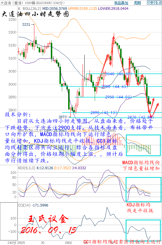 王氏寄語: 開心了就笑,不開心了就過會兒再笑。走的最快的是最美的風景,傷的最深的是最真的感情,忍無可忍,有時候沒法重新再忍,不是每個人都有機會,重新站在當初的十字路口。哪有那么多如果和假設,如果有如果,那么更無所謂錯,也就無所謂對了,無論現實如何也要笑著面對,五年之后回頭依舊是個笑話! 昨日收盤: 美國WTI原油10月期貨周三(9月14日)收跌1.32美元,或2.94%,報43.58美元/桶。布倫特原油11月期貨周三收跌1.25美元,或2.65%,報45.85美元/桶。好壞參半的美國庫存報告令油價日內走勢劇烈震蕩,原油庫存意外減少之后,油價收復全部跌幅轉而上漲,但隨后很快回吐全部漲幅而再次重挫,因精煉油和汽油庫存雙雙錄得增長,而美國原油產量也在三周連跌后重新上升。美國WTI原油期貨價格盤中最低觸及43.44美元/桶,布倫特原油期貨價格盤中最低觸及45.72美元/桶。 基本面利好因素: 美國能源信息署(EIA)數據顯示,截至9月9日當周美國原油庫存減少55.9萬桶,市場預估為增加380.0萬桶,連續三周錄得下滑。美國原油交割地庫欣庫存減少124.5萬桶。庫欣地區原油庫存連續三周錄得下滑,降幅創12周最大。 美國勞工部周三公布,8月進口物價較前月下降0.2%,錄得六個月來首次下跌,因油價與食品成本的下跌,表明通脹狀況抑制,或將促使美聯儲在下周維持當前政策。CME的FedWatch數據顯示,市場目前預計美聯儲在本月升息的可能性僅為15%。美元指數日內下跌約0.3%,刷新日低至95.20,美元走弱為油價提供了一定支撐。 中國統計局數據顯示,中國8月原油產量為1645萬噸,約合387萬桶/日,較去年同期下降9.9%,日均產量觸及至少2009年12月以來最低水平,同時也為同期第二大單月降幅。低油價迫使國有油企逐漸關閉運營成本高昂的油田,更多依賴進口補充原油供應。中國8月共進口3285萬噸原油,約777萬桶/日,為4月來最高。這些有助于緩解原油市場的供應過剩問題。 基本面利空因素: 美國能源信息署(EIA)數據顯示,截至9月9日當周汽油庫存增加56.7萬桶,市場預估為增加34.3萬桶。美國精煉油庫存增加461.9萬桶,市場預估為增加154.3萬桶。精煉油庫存連續五周錄得增加,增幅創逾8個月最大。同時上周美國原油日進口量增加107.6萬桶,當周原油進口增幅創今年以來最大。而美國上周原油產量結束三連跌環比增加3.5萬桶/日,這對油價而言可能是一個壞消息,自5月以來緩慢回升的美國石油鉆井數正在逐步反饋到美國頁巖油的產能。 國際能源署(IEA)公布最新的月度報告顯示,全球原油需求增長大幅放緩,再加上庫存和供應激增,意味著油市將保持供應過剩,至少到2017年上半年。IEA此前預測,今年下半年市場將不會出現供應過剩。報告指出,OPEC上調對非OPEC國家2017年原油供應的預估,因新油田陸續投入運營,且美國頁巖油廠商對低油價的適應能力比預期高,表明明年油市供應過剩程度將更高。同時,今年全球煉廠的產能利用率增長預計創下至少10年來最低,這將抑制原油需求,而經合組織(OECD)國家的石油庫存升至紀錄新高31.11億桶。 石油輸出國組織(OPEC)最新公布的月報顯示,從二手消息來源處搜集的數據表明8月OPEC自身產量維持在數年高位附近,日產量達3324萬桶,比7月日產量低2.3萬桶。預計2017年全球原油供應過剩為76萬桶/日。此外,8月據沙特上報的日產量較上月減少4.27萬桶至1063萬桶,但8月據伊朗上報的日產量較上月增加1萬桶至363萬桶。而2017年對OPEC原油的平均日需求預計為3248萬桶,低于前次預估值3301萬桶。 美國油服公司貝克休斯(Baker Hughes)周五(9月9日)公布數據顯示,截至2016年9月9日當周美國石油活躍鉆井數增加7座至414座,過去11周內第10周錄得增加。同時美國石油和天然氣活躍鉆井總數增加11座至508座,較去年同期減少340座。 大交所現貨原油操作建議: 技術分析: 目前從大連油四小時走勢圖,從盤面來看,價格處于下跌趨勢,下方關注2900支撐。從技術面來看,布林帶開口向外擴散,MACD指標均線向下運行綠色量柱增加,KDJ指標均線走平收攏,CCI指標均線超賣區拐頭向上運行,綜合各指標及盤面分析得出,價格短期小幅度上漲,,預計后市行情繼續下跌。 操作建議: 今日大連油(美原油)整體操作趨勢以逢低做多為主,以高空為輔。(美原油兌大連油點位:約67) 日內阻力:2970/3000(44.33/44.78) 日內支撐:2890/2850(43.13/42.54) 激進者空單2940-2930區間內可以考慮擇機入場做空,止損2970上方,目標2910/2870。 激進者空單43.88-43.73區間內可以考慮擇機入場做空,止損44.33上方,目標43.43/42.84。 穩健者空單2970-2980區間內可以考慮擇機入場做空,止損3010上方,目標2950/2910。 穩健者空單44.33-44.48區間內可以考慮擇機入場做空,止損44.93上方,目標44.03/43.43。 激進者多單2870-2880區間內可以考慮擇機入場做多,止損2840下方,目標2910/2950。 激進者多單42.84-42.99區間內可以考慮擇機入場做多,止損42.39下方,目標43.43/44.03。 穩健者多單2840-2850區間內可以考慮擇機入場做多,止損2810下方,目標2880/2910。 穩健者多單42.38-42.54區間內可以考慮擇機入場做多,止損41.94下方,目標42.99/43.43。 以上操作建議僅供參考、投資有風險、操作需謹慎。 【以上建議出自中匯天融分析部,以實盤操作建議為準】 大交所現貨白銀技術分析: 技術分析: 目前從再生銀四小時走勢圖分析,從盤面來看,價格類似呈三角形整理形態震蕩,后市突破任意一方,將延續運行。從技術面來看,布林帶開口走平,MA