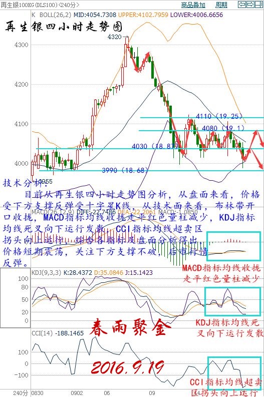 【消息面分析】上周雖然美國8月CPI全面回升打壓金價,但此前的美國零售數(shù)據(jù)以及美聯(lián)儲布雷納德對待加息的謹(jǐn)慎態(tài)度都沒能幫助金價站穩(wěn)腳跟。投資者減少了對9月決議的押注,焦點轉(zhuǎn)向美聯(lián)儲12月升息前景,而美聯(lián)儲12月很可能采取行動,黃金沖高后吸引投資者逢高做空。 本周黃金白銀將迎來等待已久的美國利率決議,市場預(yù)期不加息的概率是70%,雖然說本周美國加息的概率非常低,但是還是需要注意耶倫在利率決議之后的講話內(nèi)容,是否會涉及12月加息的言論,若涉及,則即使九月不加息,也并不是完全的利好黃金白銀的消息,12月加息的陰霾會籠罩在非美上方。另外經(jīng)歷9月后黃金白銀就需要注意美國12月份的總統(tǒng)大選行情,基本面影響因素較多。 原油方面,伊朗8月原油出口量較7月增長15%,至逾200萬桶/日,接近五年前伊朗遭西方制裁前的出口水平。盡管OPEC和其他主要產(chǎn)油國即將于9月26-28日在阿爾及利亞會晤討論凍產(chǎn),但伊朗和沙特原油出口上升。多數(shù)市場人士對達(dá)成凍產(chǎn)協(xié)議持懷疑態(tài)度。 大交所現(xiàn)貨原油技術(shù)分析: 技術(shù)分析: 目前從大連油四小時走勢圖分析,從盤面來看,價格處于布林帶下方受下方支撐反彈收十字星K線,預(yù)計后市行情上漲,從技術(shù)面來看,MACD指標(biāo)均線收攏走平綠色量柱減少,KDJ指標(biāo)均線金叉向上運行,CCI指標(biāo)均線由上向下穿破-100到達(dá)超賣區(qū),綜合各指標(biāo)及盤面分析得出,價格短期震蕩,預(yù)計后市行情上漲。 操作建議: 今日大連油整體操作趨勢以逢低做多為主,以高空為輔。 日內(nèi)阻力:2950/2980 日內(nèi)支撐:2900/2850 激進者空單2950-2940區(qū)間內(nèi)可以考慮擇機入場做空,止損2980上方,目標(biāo)2900/2870。 穩(wěn)健者空單2980-2990區(qū)間內(nèi)可以考慮擇機入場做空,止損3020上方,目標(biāo)2950/2930。 激進者多單2920-2930區(qū)間內(nèi)可以考慮擇機入場做多,止損2890下方,目標(biāo)2950/2980。 穩(wěn)健者多單2850-2860區(qū)間內(nèi)可以考慮擇機入場做多,止損2820下方,目標(biāo)2900/2930。 美原油兌大連油點位:約66.35 大交所現(xiàn)貨白銀技術(shù)分析: 技術(shù)分析: 目前從再生銀四小時走勢圖分析,從盤面來看,價格受下方支撐反彈收十字星K線,從技術(shù)面來看,布林帶開口收攏,MACD指標(biāo)均線收攏走平紅色量柱減少,KDJ指標(biāo)均線死叉向下運行發(fā)散,CCI指標(biāo)均線超賣區(qū)拐頭向上運行,綜合各指標(biāo)及盤面分析得出,價格短期震蕩,關(guān)注下方支撐有效破位,后市行情繼續(xù)看跌。 操作建議: 今日再生銀整體操作趨勢以逢高做空為主,以低多為輔。 日內(nèi)阻力:4050/4080 日內(nèi)支撐:3990/3940 激進者空單4030-4020區(qū)間內(nèi)可以考慮擇機入場做空,止損4050上方,目標(biāo)4000/3970。 穩(wěn)健者空單4080-4070區(qū)間內(nèi)可以考慮擇機入場做空,止損4110上方,目標(biāo)4050/4030。 激進者多單4000-3990區(qū)間內(nèi)可以考慮擇機入場做多,止損3960下方,目標(biāo)4030/4050。 穩(wěn)健者多單3940-3930區(qū)間內(nèi)可以考慮擇機入場做多,止損3900下方,目標(biāo)3970/4020。 現(xiàn)貨白銀兌再生銀點位:約213.55 (以上文章由春雨原創(chuàng),轉(zhuǎn)載請注明出處。溫馨提示,投資有風(fēng)險,入市需謹(jǐn)慎。以上僅代表春雨個人觀點,不作操作依據(jù),據(jù)此操作風(fēng)險自擔(dān)) |