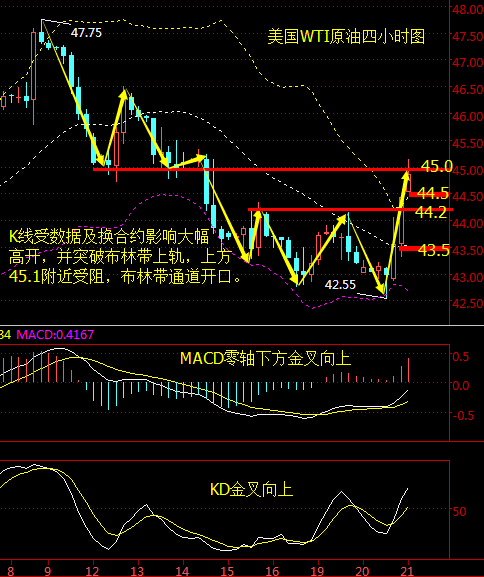 基本面分析: 周二(9月20日)美國WTI原油11月期貨收漲0.19美元,漲幅0.4%,報44.05美元/桶;周二美國WTI原油和布倫特漲跌不一,布倫特原油小幅收低而美油小幅收漲,但在隨后的電子盤交易中均錄得上漲。布倫特原油11月期貨收跌0.07美元,或0.2%,報45.88美元/桶。 在原油期貨收盤后的電子盤交易中,美國API原油庫存再次意外銳減749.7萬桶的消息則令油價短線飆升。 美國石油協會(API)公布的數據顯示,截至9月16日當周,美國API原油庫存再次意外銳減749.7萬桶,預期增加225萬桶。庫欣原油庫存減少增加40.7萬桶,與此同時,API汽油庫存意外大減245.3萬桶。美國WTI原油期貨價格應聲短線跳漲。 另外,周二下午,俄羅斯官員向國際文傳電訊社表示,俄羅斯贊同與OPEC達成為期一年的穩定油市協議。俄羅斯方面的這一消息使得市場對下周OPEC石油會議預期得到一定程度逆轉,這無疑暗示OPEC和俄羅斯最終通過控制石油產出來維穩油市可能性有所提升。 原油技術面分析: 美國WTI原油從四小時走勢圖來看,K線受數據及換合約影響大幅高開,并突破布林帶上軌,上方45.1附近受阻,布林帶通道開口,布林帶上軌向上運行。 附圖MACD指標快慢線在零軸下方金叉向上運行,紅色動能柱大幅放量;KD金叉向上運行。 綜合來看,日內油價上漲動能充足,但K線有修補布林帶缺口需求,鑒于布林帶上軌向上運行,預計早盤時段油價將震蕩偏走平,操作上建議回落至低位介入多單,45附近可布局短線空單。 今日美原油操作策略: 1、45美元附近做空,目標看向44.2~44.5美元區間,止損0.2美元; 2、44美元附近做多,目標可看向46美元附近,止損0.5美元。 白銀技術面分析: 昨日現貨白銀小區間波動,行情早盤先拉升給出19.27的位置后行情遇阻開始回落,最低給到19.055的位置后受到上行斐波那契的38.2支撐開始上行,最終日線收線在了19.2附近后日線以一根上下影線基本等長的紡錘形態收尾,而這樣的形態收尾后,日線頭肩結構依舊在做,但能否回落需要看明晨耶倫講話內容。 白銀操作建議: 今日給出19.35空,止損19.5下方目標看19整數關口附近,如果數據前不損,那么此空單做為布局持有看數據就行。 今日重點關注數據:2016年9月21(星期三) 11:00 日本央行公布利率決定。(通常是在北京時間11:00左右) 14:30 日本央行行長黑田東彥舉行記者會。 19:00 英國央行公布季度公報。 次日凌晨 02:00 美聯儲FOMC宣布利率決定并發表政策聲明。 02:30 美聯儲主席耶倫召開新聞發布會。 05:00 新西蘭聯儲公布利率決定及政策聲明。 (以上文章由春雨原創,轉載請注明出處。溫馨提示,投資有風險,入市需謹慎。以上僅代表春雨個人觀點,不作操作依據,據此操作風險自擔) |