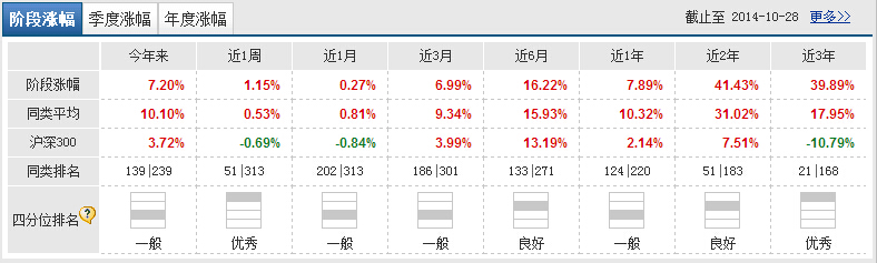 嘉實成長收益基金屬于中等風(fēng)險證券投資基金,基金定位于成長收益復(fù)合型基金,在獲取穩(wěn)定的現(xiàn)金收益的基礎(chǔ)上,積極謀求資本增值機(jī)會,并以均衡風(fēng)格追求長期增長。 一、嘉實成長收益基金概況基金全稱:嘉實成長收益證券投資基金 基金簡稱:嘉實成長收益 基金代碼:070001(前端) 基金類型:混合型 發(fā)行日期:2002年09月30日 成立日期/規(guī)模:2002年11月05日 / 20.019億份 資產(chǎn)規(guī)模:49.38億元(截止至:2014年09月30日) 份額規(guī)模:69.6374億份(截止至:2014年09月30日) 基金管理人:嘉實基金 基金托管人:中國銀行 基金經(jīng)理人:邵秋濤 成立來分紅:每份累計1.95元(18次) 管理費率:1.50%(每年) 托管費率:0.25%(每年) 最高申購費率:1.50%(前端) 最高贖回費率:0.50%(前端) 業(yè)績比較基準(zhǔn):上證A股指數(shù)