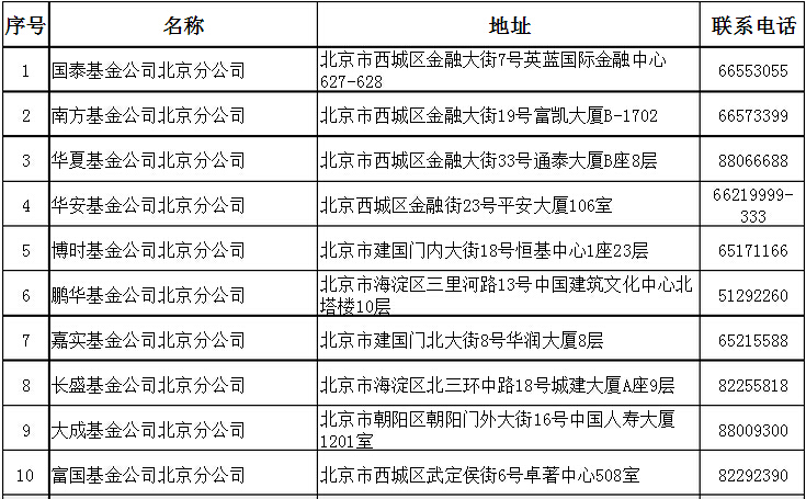 1、以投資風格為主線 判斷基金的投資能力和投資風格,是精選優質基金的主要標準。在實際的操作中,基金的持股風格各不相同,一些基金在投資上采取買入并持有的投資策略,而另外一些基金可能熱衷于頻繁調整。天相投資顧問公司的研究報告顯示,從各組基金特征來看,持股時間較長一組基金在過去一年的平均資產規模為67.33億元,高于持股期限較短基金組12.32億元的平均水平。從過去一年的平均業績排名來看,傾向于長期投資的一組基金表現略占上風。 2、以業績持續性強為主線 對基金業績的評價通常基于歷史業績的參考,不過經常有一些基金去年業績很好,基民興沖沖買進之后,第二年的業績便不好了,這就是業績持續性差。只有通過基金業績的持續性檢驗可以將其中有可能延續過往良好業績的基金挑選出來。 3、對A股市場結構變化為主線 在A股市場目前的結構轉換中,所帶來的波動風險十分明顯。換言之,結構轉換過程中,只有大調整才有大機會。這也給基金經理增加了配置難度。 4、以投資能力為主線 其實以基金公司考察基金是一個比較常見的指標,當時對于不同的市場變化,可需要變通對基金公司考察的部分細節。一般來說,主要考慮基金公司基本實力、投資管理能力、基金公司的穩定性、公司治理結構、風險控制水平等。其中,基金公司基本實力主要考慮管理經驗、產品線完善程度、管理有效規模等因素;投資管理能力主要考慮業績、資產流動性等因素;公司的穩定性主要考慮股權、公司高管、研究團隊、基金經理穩定性因素。 二、北京優質基金公司名錄以下選取了部分基金公司北京分公司名錄,基民可根據自己的投資需求,進一步咨詢和考察。
