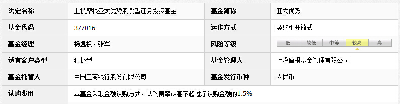 基金投資選擇是一件很費(fèi)力的事情,不少投資者會資訊一些有經(jīng)驗(yàn)的大牛,或者通過他們發(fā)布的研究文章來選擇,雖然是一個(gè)好辦法,但是很多時(shí)候個(gè)人的觀點(diǎn)和經(jīng)驗(yàn)僅僅是從他自身的角度來出發(fā),并不能代表你的投資偏好。小編覺得對所投基金有個(gè)全面的了解才能做出正確的選擇。下面就一起來了解這只上投摩根亞太優(yōu)勢基金的當(dāng)該概況吧。 一、上投摩根亞太優(yōu)勢基金檔案表根據(jù)上投摩根亞太優(yōu)勢基金的一些基本特點(diǎn),小編整理了一下基金檔案表,通此表你將對此基金有個(gè)全面的認(rèn)識: