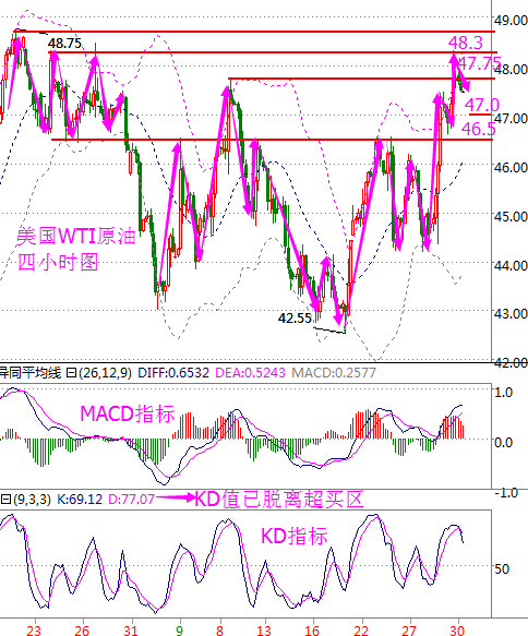 金盤神手:9.30晚評原油白銀天然氣行情走勢分析及操作建議 寫在前面 盛年不重來,一日再難晨,及時宜自勉,歲月不待人,轉(zhuǎn)眼間在金融投資市場拼殺已經(jīng)數(shù)年,回首過去,我們收獲的是喜悅,沉淀的是睿智,感受的是金融市場的步步驚心,展望未來,我們充滿自信,懷抱感恩,經(jīng)歷過風吹雨打必然讓我們更加適應(yīng)市場的跌宕起伏。今日周線月線雙重收官,預(yù)計行情波動比較大,希望大家今晚都能有所收獲,同時也提醒大家晚間謹慎操作,防止套單。 周五(9月30日)在OPEC凍產(chǎn)協(xié)議達成的旁側(cè),金融市場關(guān)注焦點“德意志銀行”。昨夜“德銀”無疑是市場的王者,該行負面消息令市場對歐洲整體銀行業(yè)產(chǎn)生疑問,金融危機擔憂凸顯。恐慌指數(shù)一度飆升26%,黃金白銀等避險資產(chǎn)走高。 近兩日,油市因為OPEC意外出現(xiàn)了減產(chǎn)的意向而情緒高漲。不過始終有部分市場保持謹慎,同時隨著事態(tài)的繼續(xù)發(fā)酵,此次減產(chǎn)意向的走向似乎不太明朗。 首先爭議來自于OPEC內(nèi)部。由于新的投資已在過去幾年提升了伊拉克的產(chǎn)量,該國在此次減產(chǎn)意向中沒有得到豁免,則其產(chǎn)量水平就成了爭議焦點。 原油行情走勢分析 美國WTI原油從四小時走勢圖來看,油價果不其然受獲利回吐等因素回落,但下方關(guān)鍵位置未破,仍不能確定日內(nèi)多空。經(jīng)過早間的下跌,早盤時段策略提到的上方關(guān)鍵位置48.0可適當下移至47.75附近。從指標來看,布林帶通道仍向上,目前開始收口,附圖MACD指標快慢線在零軸上方緩慢拐頭,紅色動能柱縮量;KD指標超買區(qū)死叉向下運行,目前KD值已脫離超買。 晚間做單思路:綜合來看,目前仍未破位,仍需觀望。但早間提到的看空四點中,KD已脫離超買,這點讓油價出現(xiàn)反彈可能。更多技術(shù)面分析搜索關(guān)注金盤神手更多文章。 原油部分參考策略 1、上破47.75美元位置,可在小幅回落后進多,目標看向48.75美元附近; 2、下破47美元附近,可在小幅反彈后進空,目標看向46.5美元附近; 白銀技術(shù)面分析 國際現(xiàn)貨白銀從四小時走勢圖來看,白銀價格近兩個交易日同樣處于19.0~19.2美元區(qū)間內(nèi)窄幅震蕩,目前布林帶中、下軌附近分別形成壓力及支撐。附圖MACD指標快慢線在零軸下方粘合走平偏向上,動能柱消失;KDJ指標三線聚攏走平。 晚間做單思路:綜合來看,白銀價格同樣有反彈需求,但幅度不會太大,操作上建議反彈至高位做空。 現(xiàn)貨白銀部分參考策略 反彈至19.2美元附近做空,目標看向19美元附近,止損0.1美元; 18.9美元上方做多,目標看向19.2美元附近,止損0.1美元。 天然氣方面 行情回顧:我們先來回歸一下昨日天然氣的行情,昨晚經(jīng)歷了跳樓機的行情,先是20:00點跌了大概100個點,隨后EIA數(shù)據(jù)出來后利多短線上漲了80多個點,抹平之前的跌幅,晚間又出大幅回調(diào)最終收盤至4881; 技術(shù)分析:從四小時圖來看,MACD平行運行于零軸下方,綠色能量逐漸放量。目前布林帶三軌平行向前運行,K線運行于布林帶中軌和下軌之間,雖然EIA數(shù)據(jù)的刺激令K線短線上漲突破布林帶中軌,但受中軌壓制,隨即又跌下來,預(yù)計天然氣后期還會有一定的跌幅,重點關(guān)注上方4905的壓制情況。 天然氣操作策略 1、4830附近多單進,止損40個點,目標4900,破位持有; 2、4910附近空單進,止損40個點,目標4840,破位看4800; 晚間重點關(guān)注 17:00 歐元區(qū)8月失業(yè)率、9月CPI 20:30 美國8月個人收入環(huán)比、8月個人消費支出環(huán)比 22:00 美國9月密歇根大學消費者信心指數(shù) 01:00 美國9月30日當周貝克休斯總鉆井數(shù)