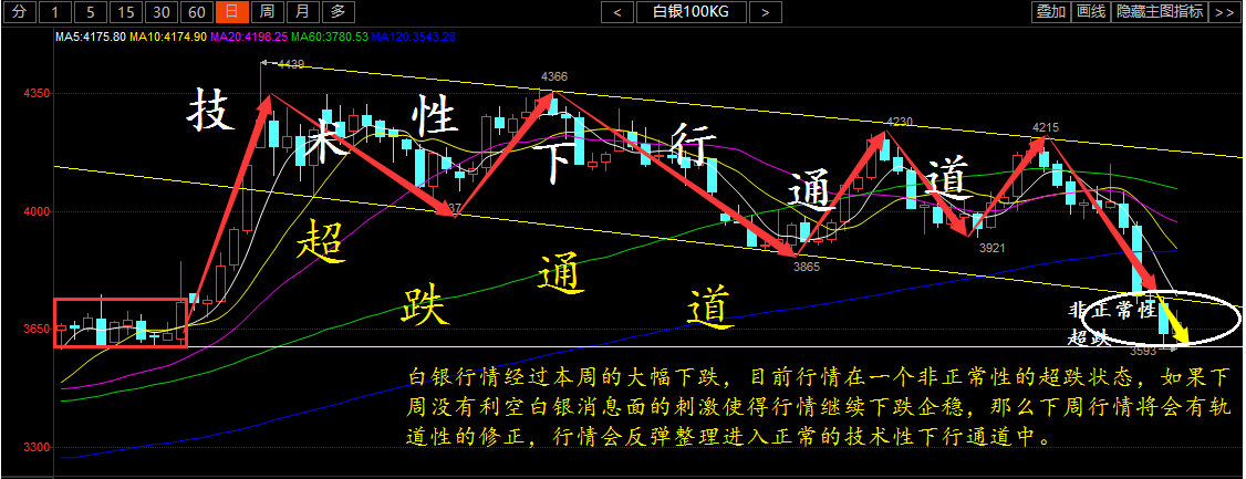 國際消息面 北京時間周五(10月7日)20:30,美國勞工部公布的美國9月季調后非農就業人口錄得15.6萬人,低于預期的17.5萬人,前值上修至16.7萬人;美國9月失業率為5%,預期與前值均為4.9%。數據公布后,美元下跌,白銀小幅上沖,盡管9月非農不及預期,但足以證明美國就業市場依然強勁,從而支撐美聯儲在未來數月加息。9月報告存在兩大亮點:美國9月勞動參與率回升62.9%,創下六個月來最高;9月平均每小時薪資月率增0.2%;年率增幅則達2.6%,重新回到6月和7月所觸及的逾兩年高位,所以在非農·數據公布的后兩個小時,白銀行情大幅回落并刷新日內低點; 從技術面上看白銀下周行情: 白銀從日線圖上進行分析,白銀行情經過本周的大幅下跌,目前行情在一個非正常性的超跌狀態,如果下周沒有利空白銀消息面的刺激使得行情繼續下跌企穩,那么下周行情將會有軌道性的修正,行情會反彈整理進入正常的技術性下行通道中。 所以下周的操作布局: 在進入技術性通道之前以回撤做多為主,進入技術性通道后以反彈做空為主; 下方支撐位:3580; 周一操作策略:回落3585-3595可以布局多單,目標3645-3675,止損25個點; |