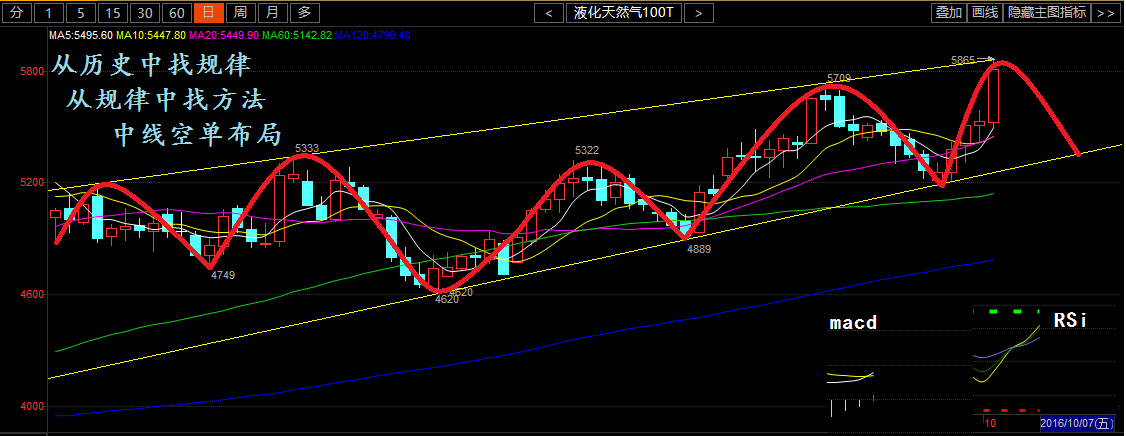 國際消息面 北京時間周六(10月8日)凌晨1點,美國油服公司貝克休斯(Baker Hughes)公布的數(shù)據(jù)顯示,截至2016年10月7日當周美國石油活躍鉆井數(shù)較前一周增加3座至428座,預(yù)期為425座。 具體數(shù)據(jù)顯示10月7日當周天然氣鉆井減少2臺至94臺,前值為96座,預(yù)期為96座;10月7日當周鉆井總數(shù)增加2臺至524臺,前值為522座,預(yù)期為522座,并且據(jù)油服貝克休斯,北海地區(qū)的油氣開發(fā)受到低油價的重挫,9月北海地區(qū)運作的石油和天然氣鉆井數(shù)目只有27座,下滑至接近1982年10月來的低點 隨著美國冬季的到來,本周五美國天然氣期貨因加熱需求增加而上漲至3.126美元/百萬英熱,刷新2015年1月來高點。 從技術(shù)面上分析天然氣下周行情: 天然氣從日線圖上看,天然氣在上上行通道中并接近上行通道的上檐,雖然目前指標上MACD技術(shù)指標紅色能量柱放量,快線上穿慢線形成金叉,相對強弱指標RSi拐頭向上,目前依舊在多頭趨勢中,但是包括布林帶,指標都在一個超賣區(qū)域,目前的每一個點的突破都是刷新歷史新高,在沒有大的消息面支撐下一般情況上行無力,我們根據(jù)歷史走勢來分析,行情5連陽一般有一波較為深度的回調(diào),建議可以考慮中線做一個空單布局。 下周的操作布局: 短線操作還是以回撤把握多單,中線建議可以做空單布局; |