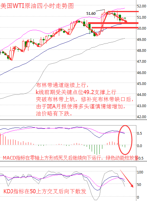 基本面分析: 周二(10月11日)美國假期后,投資者回歸市場,雖然近來OPEC和俄羅斯合作減產的消息支撐油價大幅攀升,但市場分析人士并不認為減產會順利達成,這種疑慮使得油價在連續上漲之后小幅回落調整。 周二原油價格之所以從其近15個月高位回落是因為據國際能源機構(IEA)數據顯示,石油輸出國組織(OPEC)9月份的石油產量升至紀錄高位所致,此外市場獲利了結也對油價構成下行壓力。當然美元指數的強勁攀升也是油價盤中反彈的阻力。 同時,市場普遍認為近期沙特和俄羅斯的言論提高了歐佩克石油減產協議達成的可能性,但最終實施的結果可能不盡人意。因為首先,利比亞、尼日利亞和伊拉克的高產量拉低了明年油市能達成平衡的可能性,另外,就算協議達成并成功實施,最初油價和基本面的利好也是不可持續的,因高油價將推動OPEC國家提高產量。 周三,歐佩克公布月度原油市場報告,一般為北京時間18點到20點之間,投資者應重點關注。 原油技術面分析: 美國WTI原油從四小時走勢圖來看,k線在觸及關鍵點位49.2后V型反轉突破布林帶上軌,待k線修復萬布林帶缺口后,由于基本面IEA月報利空情緒濃厚,油價從15月高點落下,原油多頭在經歷過油價連續上漲之后也開始變得謹慎,目前已經失守51美元大關。k線價格快觸及前期支撐點位50.55附近,如果突破其點位向下看向50點整數關點。 從指標來看,布林帶通道持續上行,附圖MACD指標快慢線在零軸上方形成死叉且繼續向下運行上行,綠色動能柱持續放量;KDJ指標在50上方交叉后向下散發。 綜合來看,短期內油價將有小幅回落,預計日內是以一個先空后多的行情,但由于晚間時段將公布歐佩克月報,操作上建議亞盤時段謹慎做空為主。 10.12美原油操作策略:謹慎做空。 1、50.50美元附近做多,止損50.20美元,目標51..50—52.50美元附近 2、51.50美元附近做空,止損52.00美元,目標50.50—50.00美元附近 白銀技術面分析: 昨日現貨白銀回踩17.808的位置后行情受到前期斐波那契的壓力點以及前日倒錘頭的壓力后行情開始回落過程,盤中最低給到了17.41的位置后行情收線,日線以一根上影線很長的中陰線收尾,而這樣的形態收尾后,今日的行情延續空,點位上, 白銀操作建議: 今日回踩17.65空,止損17.82下方目標看17.28和17整數關口附近。 今日重點關注: 17:00 歐元區8月工業產出月率 歐佩克將公布月度原油市場報告 19:00 歐佩克與非歐佩克產油國計劃召開非正式會議 20:00 美聯儲三號人物、紐約聯儲主席杜德利將與紐約州商業理事會進行一場開放媒體采訪的爐邊談話 21:40 2016年FOMC票委、堪薩斯聯儲主席喬治將在芝加哥聯儲年度支付座談會上就“支付系統”發表講話 次日凌晨2:00 美聯儲FOMC將公布9月貨幣政策會議紀要 次日凌晨4:30 美國10月7日當周API原油庫存(萬) (以上文章由春雨原創,轉載請注明出處。溫馨提示,投資有風險,入市需謹慎。以上僅代表春雨個人觀點,不作操作依據,據此操作風險自擔) |