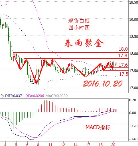 基本面分析: 本周三(10月19日),美國WTI 11月原油期貨收盤上漲1.14美元,漲幅2.27%,報51.43美元/桶,美國原油價格觸及15個月最高水平,此前美國EIA數據顯示,上周原油庫存七周內第六周意外大幅減少。 美國能源信息署(EIA)公布數據顯示,截至10月14日當周,美國原油庫存減少524.7萬桶,至4.687億桶。美國精煉油庫存減少120萬桶,連續四周錄得下滑。美國原油交割地庫欣庫存減少163.5萬桶,降幅為4月8日當周以來最大,前值為減少131.8萬桶。此外,上周美國原油日進口量減少91.2萬桶。 中國國家統計局周三(10月19日)數據顯示,9月國內原油產量降至1598萬噸,或389萬桶/日,日計算量接近六年最低,同時9月中國原油產量較上年同期下降9.8%,創紀錄第二大同比降幅。中國為全球前五大產油國,中國原油產量大跌,是中國油企持續致力提高效率,或成為幫助全球油市恢復平衡的最新跡象。 原油技術面分析: 從原油連續四小時走勢圖來看,布林帶開口不斷擴大,中上軌不斷向上運行,下軌拐頭向下。k線在50美元附近受到支撐直線上漲突破布林帶上軌,目前存在修復需求。盤面上看,k線價格擺脫盤整期,劍指52美元,油價創15月新高。附圖MACD指標在零軸上方不斷向上運行,紅色動能柱略有縮量,但十分充足。KDJ指標在超買去逐漸黏合。 綜合來看,原油價格上漲動能較足,油價有望突破52美元,預計后市油價將震蕩上行。操作建議以低多為主。 美原油操作策略:低多為主 今日回踩51.5多,止損51.2上方目標看52.22,突破看53附近。 白銀技術面分析: 現貨白銀從四小時走勢圖來看,日內的拉升并沒有完全打破盤整的僵局,上方17.8位置仍存在較大阻力,不過鑒于黃金白銀的相關性,仍判定其已打開部分上行空間。從指標來看,布林帶通道開口向上,附圖MACD指標快慢線持續上行并向上貫穿零軸,紅色動能柱縮量。 綜合來看,白銀價格同樣有回落需求,多頭強勢下,操作上建議以回落做多為主。 現貨白銀操作策略: 1、回落至17.4~17.5美元附近做多,目標看向18美元附近,止損0.2美元; 2、上方18美元不破可在18美元下方附近做空,目標看0.2美元,止損0.1美元。 今日重點關注: 09:00 美國大選第三場總統選舉辯論。 16:30 英國9月季調后零售銷售月率 19:45 歐洲央行將公布最新的利率決議 20:30 美國10月15日當周初請失業金人數 22:00 美國9月成屋銷售總數年化 。ㄒ陨衔恼掠纱河暝瓌,轉載請注明出處。溫馨提示,投資有風險,入市需謹慎。以上僅代表春雨個人觀點,不作操作依據,據此操作風險自擔) 本文作者系CFP注冊理財規劃師,多年從事金融領域相關工作,對現貨大宗商品有豐富的實戰經驗。 |