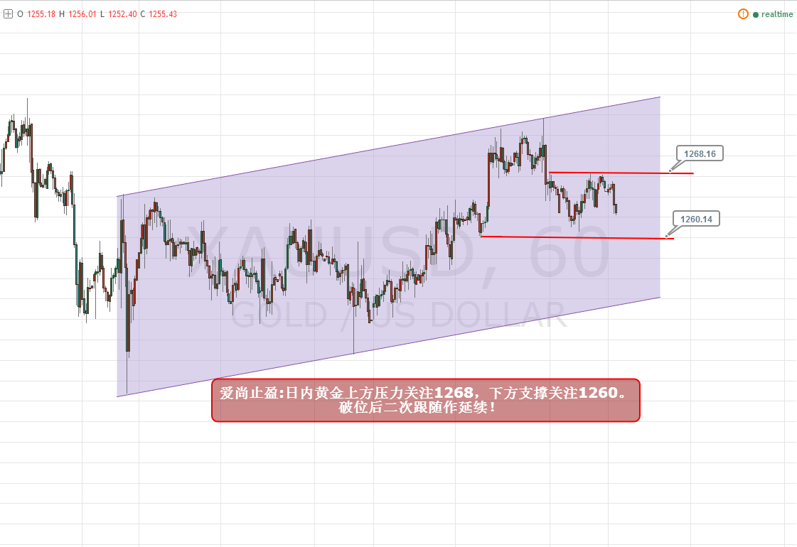 黃金:周五黃金在兩次測試前期高點1268附近后走回落,彰顯出此位壓力的有效性,1268也是日內黃金多頭的分水嶺,而目前下方支撐位于1260一線,此位,是前期多頭拉升的起漲點,對于今日空頭而言,也是較為重要的防守點,日內黃金只要不跌破此位,將有望走上行,若跌破1260,金價將再度轉為弱勢。 原油:周五原油同樣是兩次測試51一線壓力附近后走回落,同樣彰顯出此位壓力的有效性,日內,原油若破位51,將有望繼續走上行,原油目前下方支撐位于此輪反彈回撤的0.618支撐,此位,也是周五晚間的低點50.18一線,下方強支撐位于此輪反彈回撤的0.786支撐,此位,也剛好對應原油小時圖上升通道的下軌支撐49.7一線,此位,也是短期多頭防守的重要支撐。 操作策略: 黃金1262多,止損1258,目標看1268-72 原油50.2多,止損49.6,目標看50.9-51.4 |