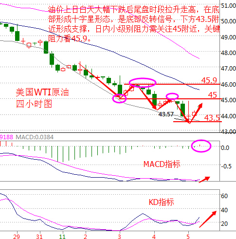 行情回顧: 周五在受到前期空頭趨勢以及非農市場情緒的影響下,日內油價依舊維持窄幅震蕩,在美盤之際,油價突然暴跌至43.57美元,隨即暴漲拉升企穩44美元上方附近,這秒跌秒漲的行情走勢令人難以預計,這主要還是由于市場傳聞沙特方面威脅增加產量甚至可能退出OPEC會議,令減產預期愈加悲觀,油價一度跌創六周新低,但隨后OPEC秘書長對傳聞予以否認,幫助油價收復大部分跌幅。這扭轉性的跌漲再度顯現出OPEC內部矛盾的擴大化,令本周原油空頭趨勢迎來擔憂,以及月底的維也納會議甚是疑慮重重。 基本面分析: 上周五(11月4日) 美國WTI原油12月期貨收跌0.59美元,或1.32%,報44.07美元/桶,盤中最低觸及43.58美元/桶,一周重挫9.43%;布倫特原油1月期貨收跌0.77美元,或1.66%,報45.58美元/桶,盤中最低觸及45.09美元/桶,上周暴跌10.02%。 沙特和伊朗矛盾升級恐導致石油輸出國組織(OPEC)不減反增,市場投資情緒大幅受挫,此外美國石油活躍鉆井數的繼續走高以及美國大選前股市承壓均拖累了油價走勢。 美國總統大選之前最后一份就業報告如約出爐。美國10月新增非農就業略微低于預期,但失業率下降,且美聯儲主席耶倫關心的薪資增速創金融危機以來最高水平,這令12月加息預期進一步升溫。 近期萬眾矚目的2016年美國大選將于本周二(11月8日)正式啟動,投票將橫跨六個時間,在不同時間逐步開始,多數公開投票時間是從北京時間11月8日晚間7點開始至11月9日下午2點結束。屆時原油市場必將巨幅震蕩,投資者需重點關注。 原油技術面分析: 美國WTI原油從四小時走勢圖來看,油價上日白天大幅下跌后,在尾盤時段直線拉升接近日內高點,在下行通道底部形成十字星反轉形態,同時該點觸及布林帶下軌。下方43.5附近形成支撐,日內小級別阻力關注45附近,關鍵阻力看45.9美元。 從指標來看,布林帶通道緩慢收口向下,附圖MACD指標快慢線在低位形成金叉向上運行,紅色動能柱冒頭放量;KD指標在超賣區形成金叉向上發散。 綜合來看,原油價格上漲動能較足,由于今天油價高開可能有回調需求,操作上建議回調做多為主。 美原油操作策略:回調做多 1、回調至44美元附近做多,目標看向45美元附近,進一步則看向45.9美元下方,止損0.4美元; 2、45.9美元下方可嘗試做空,目標看0.5美元以上,止損0.2美元,目標不到不做空。 白銀技術面分析: 現貨白銀從四小時走勢圖來看,白銀價格同樣跳空低開,下方觸及18.1美元附近后反彈,形成支撐,下方關鍵支撐看18美元關口,上方布林帶中軌18.3美元存在阻力。 從指標來看,布林帶通道收口偏走平,附圖KD指標拐頭向下運行。綜合來看,白銀價格有回落可能,操作上建議反彈做空為主。 現貨白銀今日操作建議: 1、上方18.3~18.4美元區間內可做空,目標看向18.1美元附近,止損0.1美元; 2、下方18美元附近可做多,目標看向18.3美元上方,止損0.1美元。 今日重要關注數據: 08:30 澳大利亞10月季調后ANZ網絡招聘廣告年率(%) 17:10 歐元區10月零售業PMI 17:30 歐元區11月Sentix投資者信心指數 18:00 歐元區9月零售銷售月率(%) 23:00 美國10月就業市場狀況指數LMCI 。ㄒ陨衔恼掠纱河昃劢鹪瓌,轉載請注明出處。溫馨提示,投資有風險,入市需謹慎。以上僅代表春雨個人觀點,不作操作依據,據此操作風險自擔) 本文作者系CFP注冊理財規劃師,多年從事金融領域相關工作,對現貨大宗商品有豐富的實戰經驗。 |