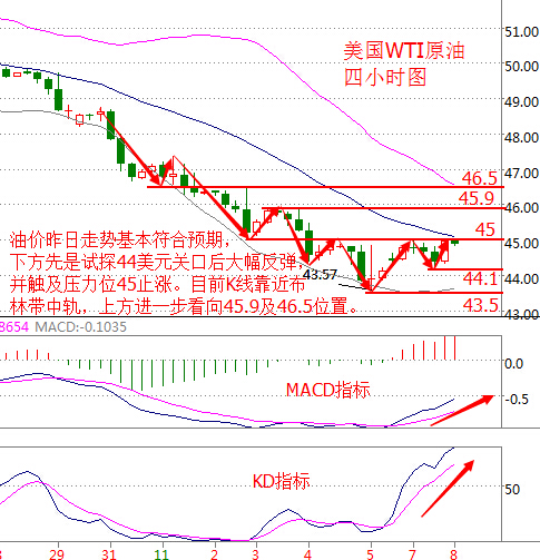 市場走勢回顧: 現貨原油走勢在上周末出現轉機,由于市場之前爆出OPEC內斗升級的消息,導致市場紛紛開始質疑OPEC凍產決心,隨后油價連續走出6連跌格局,而過低的油價OPEC各國也開始站坐立不安,OPEC部分成員國開始紛紛表示支持凍產決心,周一原油市場開盤后油價謹慎上探,最高觸及45.01美元高位,收盤于44.95美元位置; 基本面分析: 周一(11月7日)美國WTI原油12月期貨收漲0.82美元,或1.86%,報44.89美元/桶,最高觸及44.99美元/桶。布倫特原油1月期貨周一收漲0.57美元,或1.25%,報46.15美元/桶,最高觸及46.38美元/桶。 OPEC秘書長巴爾金都近日表示,該組織將履行9月達成的阿爾及爾減產協議。他補充道:“我們承諾將履行阿爾及爾會談達成的減產協議,所有的14個成員國都是如此。” 美國能源情報監測機構Genscape數據顯示,截至11月4日當周美國原油主要交割地庫欣庫存減少44.2萬桶,這為油價提供了部分支撐。 周二(11月8日),美國總統大選迎來終極投票日。北京時間19:00投票最先從東海岸開始,預計至11月9日12:00左右可從已公布投票結果知曉新一屆美國總統人選。美國總統大選從最新的民調來看,希拉里與特朗普二者的差距仍然不大,表明不確定性依然存在,投資者應不可掉以輕心。 原油技術面分析: 美國WTI原油價格從四小時走勢圖來看,油價昨日走勢基本符合預期,下方顯示試探44美元關口觸及44.11美元后大幅反彈,并觸及45美元止漲。目前K線靠近布林帶中軌,上方進一步阻力看向45.9及46.5美元位置。 從指標來看,布林帶通道收口向下,附圖MACD指標快慢線持續向上運行,紅色動能柱放量;KD指標持續向上運行。 綜合來看,原油價格多頭依舊偏強勢,預計日內會是一個震蕩上行的格局,操作上建議回落做多為主。但由于美國大選目前希拉里領先,這可能令油價走低,操作上可以預埋空單。 今日原油操作建議:回落做多 44.1美元附近做多,目標看向45.9美元附近,止損0.4美元; 上方46.5美元附近做空,目標看向45美元上方,止損0.3美元; 現價45美元附近可輕倉嘗試做空,止損0.3美元,盈利目標1美元以上。 白銀技術面分析: 現貨白銀從四小時走勢圖來看,下方同樣符合預期觸及18美元關口反彈,并拉出下影線極長的十字星,說明相比黃金,白銀走勢多頭偏強勢,但受限于黃金的弱勢走低。上方阻力看向18.3,進一步看向18.43美元,下方支撐依舊看17.9~18美元區間。 從指標來看,布林帶通道開口偏下行,附圖KD指標粘合拐頭向上運行。綜合來看,白銀價格下行趨勢相對沒有黃金強,但會受黃金價格下跌帶動,操作上同樣建議反彈做空為主。 現貨白銀今日操作建議: 17.9~18美元區間做多,目標看向18.3美元上方,止損0.1美元; 18.43美元附近做空,目標看向18美元附近,止損0.1美元。 今日重點關注: 10:00中國10月貿易帳(人民幣計價) 10:50中國10月貿易帳(美元計價) 15:00德國9月工業產出終值 15:00德國9月未季調貿易帳終值 17:30英國9月工業產出 次日凌晨5:30API原油庫存 美國大選全民投票初步結果有望于次日12:00左右出爐。 (以上文章由春雨聚金原創,轉載請注明出處。溫馨提示,投資有風險,入市需謹慎。以上僅代表春雨個人觀點,不作操作依據,據此操作風險自擔) |