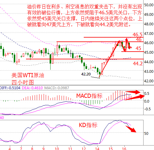 基本面分析: 周三(11月16日)美國WTI原油12月期貨收跌0.24美元,或0.52%,報45.57美元/桶,盤中最高觸及46.41美元/桶。布倫特原油1月期貨周三收跌0.32美元,或0.68%,報46.63美元/桶,最高至47.56美元/桶。 雖然石油輸出國組織(OPEC)正在積極協(xié)調(diào)各成員國之間的分歧,并展現(xiàn)出積極的限產(chǎn)跡象,但美國上周原油庫存的再度大增依然令油價承壓,同時美元的持續(xù)走高也令油價下行風(fēng)險進一步加大。 OPEC消息人士周三表示,OPEC官員正努力制訂限制產(chǎn)量協(xié)議的細節(jié),縮小部分成員之間分歧,展現(xiàn)出落實8年來首個限產(chǎn)協(xié)議的積極跡象。限產(chǎn)協(xié)議關(guān)鍵之一,是伊朗的產(chǎn)量水平。伊朗期望其產(chǎn)量維持在400萬桶/日,但其他OPEC成員認為其產(chǎn)量應(yīng)該維持在370萬桶/日。這個問題令到10月28日高層會議一度膠著。 俄羅斯能源部長諾瓦克今日也發(fā)表講話稱,俄羅斯已經(jīng)做好配合OPEC限產(chǎn)行動的準備,認為OPEC有很大可能達成協(xié)議,這鼓舞了多頭信心,油市一度出現(xiàn)瘋狂買入的跡象,為油價提供了有效支撐。 原油技術(shù)面分析: 美國WTI原油從四小時走勢圖來看,油價昨日在利多、利空消息的雙重夾擊下,并沒有出現(xiàn)有效的破位行情,上方依然受阻于46.5美元關(guān)口,下方依然受45美元關(guān)口支撐,日內(nèi)繼續(xù)關(guān)注這兩個點位,上破就看向47美元上方,下破就看向44.2美元附近。 從指標來看,K線觸及布林帶上軌后回落,布林帶開口走平,附圖MACD指標快慢線向上運行,快線出現(xiàn)走平跡象,紅色動能柱縮量;KD指標高位死叉向下發(fā)散。 綜合來看,技術(shù)面上油價仍偏空頭,亞盤時段可以短線反彈空單操作。 今日美原油操作建議:反彈做空 1、46美元下方做空,目標看向45美元附近,破位繼續(xù)持有晚間看向44.2美元,止損46.5美元附近; 2、44.5~45美元區(qū)間做多,目標看向46美元附近,破位繼續(xù)看向46.5美元,止損44.2美元附近。 白銀技術(shù)面分析: 現(xiàn)貨白銀從四小時走勢圖來看,白銀價格震蕩區(qū)間相對更大,上方阻力關(guān)注17.23美元,下方關(guān)注16.8美元,近期也需要關(guān)注這兩個點位的破位情況,有效破位的意思就是指破位之后還能夠企穩(wěn),并不只是留下一條上影線。 從指標來看,布林帶通道收口向下,K線震蕩于中、下軌之間,附圖KD指標死叉向下發(fā)散,但K值走緩。 綜合來看,預(yù)計白銀價格同樣的維持區(qū)間震蕩,操作上建議在區(qū)間內(nèi)高拋低吸。 白銀操作建議: 今日的行情回踩17.1空,止損17.3,下方目標看上周低點16.6,跌破的話止損跟進本錢持有看16.3和16. 今日重點關(guān)注: 17:30 英國10月季調(diào)后零售銷售月、年率(%) 18:00 歐元區(qū)10月CPI年率(%) 21:30 美國10月未季調(diào)CPI年率終值(%) 21:30 美國11月12日當(dāng)周初請失業(yè)金人數(shù)(萬) 21:30 美國11月5日當(dāng)周營建許可月率(%) 21:30 美國10月實際收入月率(%) 23:00 美聯(lián)儲主席耶倫發(fā)表關(guān)于經(jīng)濟前景展望的證詞 (以上文章由春雨聚金原創(chuàng),轉(zhuǎn)載請注明出處。溫馨提示,投資有風(fēng)險,入市需謹慎。以上僅代表春雨個人觀點,不作操作依據(jù),據(jù)此操作風(fēng)險自擔(dān)) |