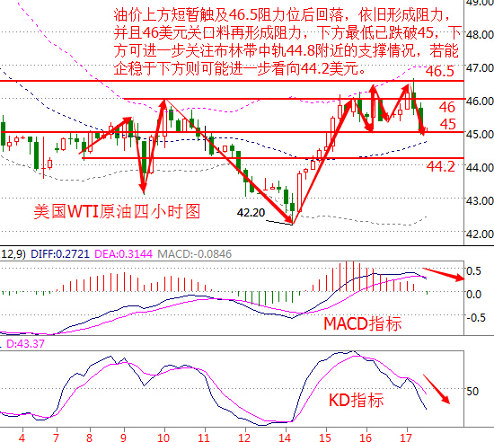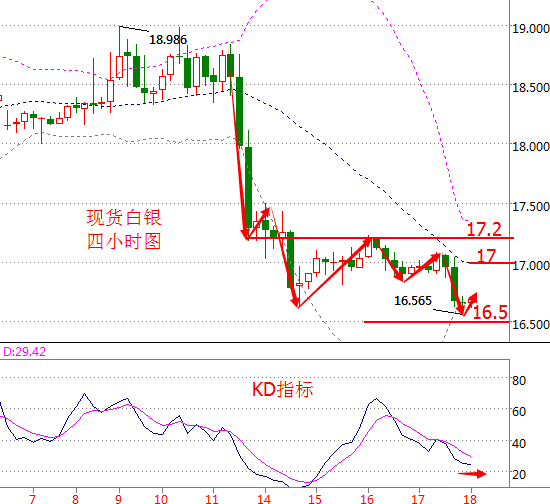 基本面分析: 周四(11月17日) 美國WTI原油12月期貨收跌0.15美元,或0.33%,報45.42美元/桶,最低觸及44.97美元/桶。布倫特原油1月期貨周四收跌0.14美元,或0.30%,報46.49美元/桶,最低觸及46.06美元/桶。凍產方面的消息一度將美油價格推升至46.58美元/桶,不過耶倫鷹派的講話令油價大幅回調。 沙特能源部長法利赫表示,OPEC有很大希望能落實9月下旬在阿爾及爾達成的限產協議。法利赫指出,全球油市已經在重歸均衡的進程上,OPEC在維也納落實限產協議將加速這一進程。委內瑞拉總統馬杜羅周三在與OPEC秘書長巴爾金都會談后表示,OPEC成員國準備達成一份“強制性的”協議,巴爾金都認為目前油市正經歷著50年來最糟糕的處境。OPEC官員目前正努力制訂限制產量協議的細節,縮小部分成員之間分歧,展現出落實8年來首個限產協議的積極跡象。 美聯儲主席耶倫在國會的證詞彰顯鷹氣,再加上日內公布的美國CPI、初請以及新屋開工數據均表現靚麗,美聯儲12月加息概率直逼100%,美元指數刷新13年半高位至101。由于現在離特朗普宣誓就職還有兩個月,加上美聯儲下月升息的可能性已全部得以消化,一些銀行稱美元可能會回調,但預計幅度不會太大。美元走強將令油價承壓。 原油技術面分析: 美國WTI原油從四小時走勢圖來看,K線上方形成烏云蓋頂形態,并且出現大幅回落,油價曾短暫觸及46.5美元關口后回落,依舊形成阻力,油價最低已跌破45美元關口,下方進一步關注布林帶中軌44.8附近的支撐情況,若能企穩于下方則可能進一步看向44.2美元附近。 從指標來看,K線上行至上軌下方后大幅回調并運行至中軌上方,附圖MACD指標形成死叉向下運行,綠色動能柱冒頭放量;KD指標持續向下運行。 綜合來看,油價短線上仍有下行動能,操作上建議反彈做空為主。 今日原油操作建議:反彈做空 46美元下方做空,目標看向45美元下方,止損0.3美元; 44.8美元附近輕倉做多,目標看0.5美元左右,止損0.2美元。 白銀技術面分析: 現貨白銀從四小時走勢圖來看,白銀價格在經過短時間的盤整后,因布林帶中軌下行,K線觸及中軌后出現大幅回落,上方需要關注17.2美元的阻力,目前17美元位置也形成阻力,日內料進一步看向16.5美元,破位料繼續看向15.8美元關口上方。 從指標來看,K線觸及布林帶下軌出現止跌小幅反彈,附圖KD指標持續下行。 現貨白銀操作建議: 17美元附近做空,目標看向16.5美元附近,止損0.2美元; 16.5美元附近輕倉做多,目標看0.3美元左右,止損0.1美元。 今日重點關注: 17:00 歐元區9月季調后經常帳終值(億歐元) 16:00 德拉基發表講話 21:30 加拿大10月CPI年率(%) 23:30 美國截至11月11日當周ECRI領先指標 次日凌晨02:00 美國11月18日當周油服貝克休斯石油鉆井總數(口) 沙特能源部長法利赫與俄羅斯能源部長諾瓦克計劃在第18屆天然氣輸出國論壇會晤 (以上文章由春雨聚金原創,轉載請注明出處。溫馨提示,投資有風險,入市需謹慎。以上僅代表春雨個人觀點,不作操作依據,據此操作風險自擔) 本文作者系CFP注冊理財規劃師,多年從事金融領域相關工作,對現貨大宗商品有豐富的實戰經驗。 |