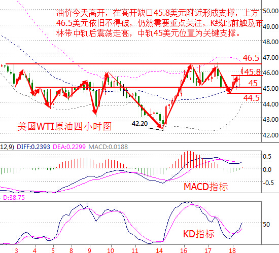 基本面分析: 周一(11月21日)油市開盤,受合約交割影響,美國WTI原油價格大幅高開,12月原油期貨已到期目前使用的是最活躍的1月原油期貨,截至發稿,美國WTI原油1月期貨交投于46.11美元附近,上漲0.42美元,漲幅0.92%。 上周油價大漲6%,結束了此前三連跌的弱勢,因周五的多哈會議上,OPEC多數成員國對伊朗的產量問題做出讓步,加大了月底落實限產協議的可能性,不過美國石油鉆井數卻大幅增加19座,這令后市油價走勢蒙上陰影。 美國油服公司貝克休斯(Baker Hughes)周五(11月18日)公布數據顯示,截至2016年11月18日當周美國石油活躍鉆井數增加19座至471座,為2015年7月以來最大單周增幅,重返9個月高點且在過去25周內有22周錄得上升。 另外,據周五的彭博調查顯示,交易員及分析師紛紛看多本周油價走勢,CFTC周報也顯示投機客四周以來首次增持原油凈多頭頭寸,這證明市場普遍看好本周油價走勢,原因大概在于臨近OPEC會議且凍產協議達成可能性提高。 原油技術面分析: 美國WTI原油1月期貨從四小時走勢圖來看,油價今天高開,在高開缺口45.8美元附近形成支撐,上方46.5美元依舊不得破,仍然需要重點關注,破位則有可能繼續看向47美元上方,K線此前觸及布林帶中軌后震蕩走高,中軌45美元位置為關鍵支撐。 從指標來看,K線運行在布林帶上軌下方,附圖MACD指標粘合拐頭向上,紅色動能柱冒頭放量;KD指標金叉向上運行。 綜合來看,油價存在反彈動能,但由于今天開盤高開高走,可能有回補高開缺口需求,預計今日油價會是先跌后漲的行情,操作上建議回落做多為主。 今日美原油操作策略:回落做多 45.5~45.8美元區間做多,目標看向46.5美元附近,止損0.3美元; 46.5美元附近輕倉做多,目標看0.4美元左右,止損0.2美元。 白銀技術面分析: 現貨白銀從四小時走勢圖來看,白銀價格走勢同金價走勢雷同,也形成了標準的“下降旗形”形態。上方受阻于16.8美元,進一步關注17美元關鍵阻力,下方16.4~16.5美元區間形成支撐。 從指標來看,K線處于布林帶下軌上方,附圖KD指標粘合向上運行。 綜合來看,白銀價格同樣出現上修需求,操作上建議輕倉做多,短期依舊高空為主。 現貨白銀操作建議: 16.5美元附近做多,目標看向16.8美元附近,止損在16.4美元; 16.8美元附近做空,目標看向16.5美元下方,止損在17美元上方。 今日重點關注: 無重要數據,需關注產油國有關凍產的講話 (以上文章由春雨聚金原創,轉載請注明出處。溫馨提示,投資有風險,入市需謹慎。以上僅代表春雨個人觀點,不作操作依據,據此操作風險自擔) 本文作者系CFP注冊理財規劃師,多年從事金融領域相關工作,對現貨大宗商品有豐富的實戰經驗。微信:chunyujujin,QQ:148115584 |