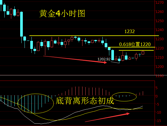 作為本周第一個交易日,黃金還是稍稍給了上周心碎的空頭一點安慰,從早間開盤小幅回落之后日內一直維持著緩慢上行的格局,目前日線保持一根扎實的陽線,而且從歐盤銜接的表現來看,晚間金價想必還有一定的上行空間,大周期暫不做過多分析,詳見筆者早間分析;短周期4小時在上周觸及1203一線之后陽線明顯比上周密集了許多,而且從MACD低位金叉的角度來看,配合主圖K線已有底背離姿態且開始有發力跡象,目前上方阻力恰好位于上周五反彈高點1216-1217一線,若晚間想更上一層樓,則該位置必須拿下,但因為大周期的空頭形態依然強勢,所以即便拿下1216一線上方的極限也是二次下跌的起點1232一線,而該位置也是本周上行的強阻力,日內預計難以觸及,根據1232-1203的黃金分割反彈阻力來看,0.618位置1220才是日內上方的關鍵;小時線目前保持良好的上攻形態,這一點從4連陽就可以看出來,且下方附圖指標MACD已經率先穿越0軸,伴隨BOLL帶微微開口,上方尚有空間;綜合而言,連續兩周的大跌讓空頭毫無喘息的機會,千二關口也岌岌可危,但適當的反彈才能讓后市安全的下跌,加上短周期形態的反彈也有雛形,故操作上逢低做多,目標1220一線,早間1210一線多單于1216一線減倉之后目標不變,其中初見1220一線可短空一個。 原油相對于黃金而言日內走勢更為強勢,早間直接高開之后短暫回撤就開始一騎紅塵,目前日線暫時受阻46.5美元,作為上周連續受阻的位置,一時間想破位還是有一定難度;4小時沖高回落疲態初現,一旦無法逾越46.5美元強阻力的話,則在MACD上會構成頂背離,如此一來對于多頭而言是極不利的,下方強支撐帶位于45.8美元附近,該位置作為上周五一直懸而不破的阻力現在已經成為下方強支撐;而小時線本小時極有可能收陰回落,如此一來上方短線三重頂形態雛形基本成型,加上MACD高位金叉開始縮量走平;所以在晚間操作上,上方重點關注46.5美元的強阻力位,該位置為短期多空分水嶺;企穩該位置方可回撤跟進多單,否則可背靠46.5美元一線做空! 以上建議只屬進場點位,具體利潤各位投資者自己把控,切莫貪多! 本文由羅子義獨家策劃,轉載請注明出處,以上分析不做具體進場點位,僅供參考。即時操作策略盤中實時指導。投資有風險,入市需謹慎。套單鎖單操作不理想可與本人溝通交流。 |