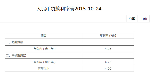 2015年中國銀行貸款利率表(圖文)