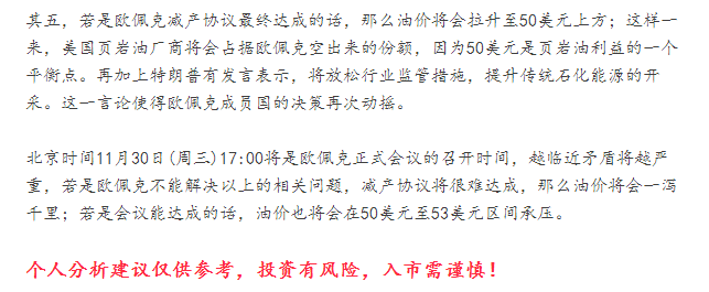 文/金策圣手 周三,受OPEC達成減產協議推動,油價暴漲10%,使風險資產受到追捧,而正式減產從2017年初開始。 相比昨日的歐佩克達成協議而言,本人也有作過前期的預測,若是有朋友關注過我的預測分析的話,那么相比你昨日的收獲應該是不錯的!(具體預測分析可搜索: 重重困難阻減產,歐佩克稍有不慎油價將一瀉千里)周三,受OPEC達成減產協議推動,油價暴漲10%,使風險資產受到追捧,金銀等避險資產受到打壓。此外,周三晚間公布的美國11月ADP就業人數增加了21.6萬人,數據公布后,市場對周五非農就業數據預期表示樂觀,美元大幅上揚,金銀承壓。 原油瀝青行情技術分析 小時圖上,K線運行于布林上軌下方,布林帶縮口運行,副圖指標MACD向下運行,紅色動能縮量,隨機指標KDJ三線向下運行;四小時圖上,K線運行于布林上軌下方,布林帶開口運行,副圖指標MACD向上運行,紅色動能放量,隨機指標KDJ三線拐頭向下運行;日線圖上,K線運行于布林上軌下方,布林帶開口運行,副圖指標MACD向上運行,紅色動能放量,隨機指標KDJ三線向上運行。綜合來看,美原油日內建議關注49.80美元至48.00美元區間(青西芳烴日內建議關注3660至3520區間).因今天下午五點是歐佩克正式會議時間,油價將會隨著會議發言而波動,所以做單的朋友后市需謹慎! 現貨白銀行情技術分析 小時圖上,K線運行于布林中軌下方,布林帶開口運行,副圖指標MACD向下運行,綠色動能放量,隨機指標KDJ三線向下運行;四小時圖上,K線運行于布林中軌下方,布林帶開口運行,副圖指標MACD向下運行,綠色動能縮量,隨機指標KDJ三線向下運行;日線圖上,K線運行于布林中軌下方,布林帶開口運行,副圖指標MACD向下運行,綠色動能縮量,隨機指標KDJ三線頭向下運行。綜合來看,倫敦銀16.60美元至16.25美元,(青西白銀日內建議關注 3320/3400區間) 青西天然氣行情技術分析 小時圖上,K線運行于布林上軌下方,布林帶開口運行,副圖指標MACD走平,紅色動能放量,隨機指標KDJ三線向下運行;四小時圖上,K線運行于布林中軌上方,布林帶縮口運行,副圖指標MACD向下運行,綠色動能放量,隨機指標KDJ三線向上運行;日線圖上,K線運行于布林上軌下方,布林帶開口運行,副圖指標MACD雙線向上運行,紅色動能放量,隨機指標KDJ拐頭向下運行。綜合來看,日內天然氣偏于空頭,青西天然氣日內建議關注4980/5160區間. 以上建議僅供參考,具體操作以實盤為準,投資有風險,入市需謹慎!盈虧請自行把控,更多詳細信息請關注筆者,成功不是靠運氣,選擇、努力需要齊驅并進! 金策寄語 靜心觀水流,冷眼看世態,投資不是一潭死水,偶爾會有一些風吹草動,一路風景一路歌。行情就是如此,它不斷地將禮物送到你的手中,而接不接受就在你自己;做好自己的投資計劃,有計劃地面對投資風險。 投資是一個完整體系,包括投資理念、投資心態、資金管理、風險控制、投資策略、操作手法與思路等。 溫馨提示:轉載請說明出處 |