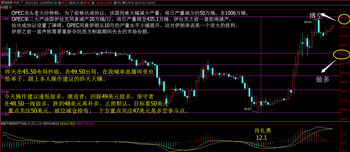| 昨天抄底在49附近出單。 晚上9點(diǎn)再次進(jìn)入多單。看50關(guān)口 |