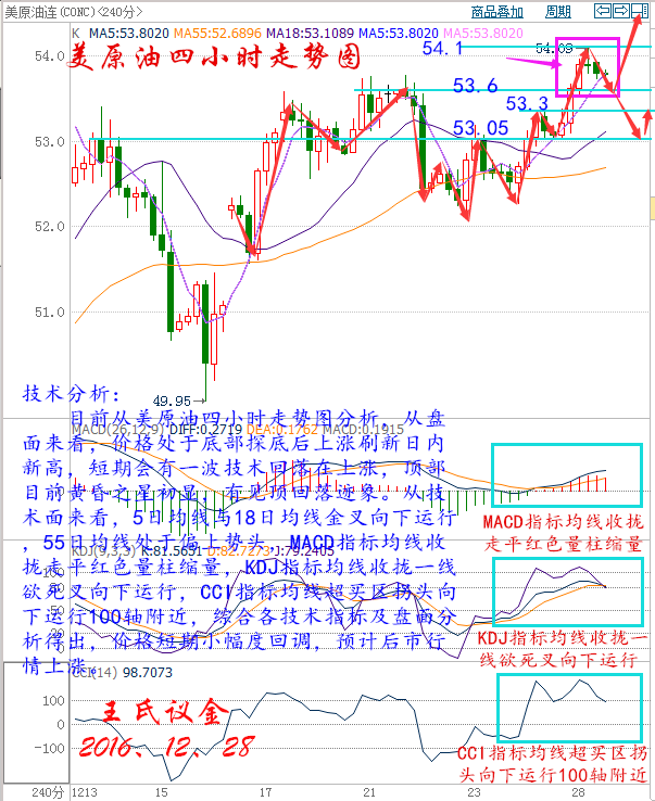 王氏議金:12、28現貨原油及白銀分析操作建議 老王操作理念:技術高位時追漲,短線盈利的很容易被大幅虧損吞回,風險大于收益,很難賺到錢。同樣,技術低位進場的,短線被套的很容易被快速拉升挽回,機會大于風險,很難套住人。因此,技術低位要敢于做多,才能不踏空;技術高位,要敢于做空,才能不高位站崗。以后老王會每天整理出當天交易行情中漲停個股的分析,給大家一些選股思路! 國際基本面消息: 美國WTI原油2月期貨周二(12月27日)收漲0.88美元,或1.66%,報53.90美元/桶。布倫特原油2月期貨周二收漲0.93美元,或1.69%,報56.09美元/桶。油市仍處圣誕行情,整體交投較為清淡,不過由于委內瑞拉積極響應減產協議,市場對未來減產執行力度的信心得到提升,油價受到有效提振,不過美元走強依然限制了油價的上行空間。美國WTI原油期貨價格盤中最高觸及54.09美元/桶,布倫特原油期貨價格盤中最高觸及57.00美元/桶。 目前部分OPEC成員國已經著手安排減產行動,委內瑞拉表示,該國原油產量計劃在2017年1月開始削減9.5萬桶/日,從而支持石油輸出國組織(OPEC)達成的減產協議。阿聯酋最大酋長國阿布扎比國營石油公司向消費者發布通知稱,計劃將Murban和Upper Zakum油田的原油供應量削減5%,同時將Das原油出口終端出口量削減3%。科威特和卡塔爾石油公司也告知消費者將削減1月份的原油供應量。OPEC于11月30日達成了2008年以來的首個減產協議,其中沙特承擔了較大部分的減產指標,計劃將該組織產量從2017年1月開始削減120萬桶/日,重回2016年1月水平。 OPEC和非OPEC產油國聯合組成的減產監管委員會將于1月13日舉行會議,共同商定如何切實落實減產計劃,這也為油價提供了進一步支撐。 能源咨詢公司Wood Mackenzie在報告中稱,2017年亞洲煉油能力將實現三年最大凈增幅,進一步提振這個全球最大、增長最快的石油消費區的原油需求。該公司表示,中國、印度等國正在新建、擴建煉油廠,這將抵消日本關閉煉油產能的影響,從而使亞洲2017年凈增45萬桶/日的原油加工能力,這是2014年以來的最高增量。 俄羅斯石油管線公司Transneft表示,因俄羅斯準備遵照全球協議的規定減產,2017年1-3月對前蘇聯國家之外市場的原油出口量將比2016年四季度縮減0.7%。不過,俄羅斯2017年第一季料將減產20萬桶/日,之后將按石油輸出國組織(OPEC)成員國與非OPEC產油國在本月達成的減產協議,減產量增加到30萬桶/日 現貨原油技術分析及操作建議———— 技術分析: 目前從美原油四小時走勢圖分析,從盤面來看,價格處于底部探底后上漲刷新日內新高,短期會有一波技術回落在上漲,頂部目前黃昏之星初顯,有見頂回落跡象。從技術面來看,5日均線與18日均線金叉向下運行,55日均線處于偏上勢頭,MACD指標均線收攏走平紅色量柱縮量,KDJ指標均線收攏一線欲死叉向下運行,CCI指標均線超買區拐頭向下運行100軸附近,綜合各技術指標及盤面分析得出,價格短期小幅度回調,預計后市行情上漲。 美原油操作建議: 今日美原油整體操作趨勢以逢低做多為主,以高空為輔。 日內阻力:54.5/55.3 日內支撐:53.6/52.8 激進者空單建議53.9~54.1區間可以考慮嘗試做空,止損54.4美元附近,目標53.6/53.3。 穩健者空單建議54.8~55區間可以考慮嘗試做空,止損55.3美元附近,目標54.5/54.1。 激進者多單建議53.8~53.6區間內可以考慮嘗試做多,止損53.3美元附近,目標54.5/54.9。 穩健者多單建議53.3~53.1區間內可以考慮嘗試做多,止損52.8美元附近,目標53.6/54.5。 以上操作建議僅供參考、投資有風險、操作需謹慎。 【以上建議出自中匯天融分析部,以實盤操作建議為準】 現貨白銀技術分析及操作建議———— 目前現貨白銀四小時走勢圖分析,從盤面來看,價格底部探底回升,突破55日均線向上,5日均線與18日均線形成金叉向上,預計后市行情上漲。從技術面來看,MACD指標均線向上運行紅色量柱增加,KDJ指標均線向上運行發散,CCI指標均線+100附近走平拐頭向上運行,綜合各指標及盤面分析得出,價格短期小幅度回落,預計后市行情上漲。 現貨白銀操作建議: 今日現貨白銀整體操作趨勢以逢低做多為主,以高空為輔。 日內阻力:16.25/16.45 日內壓力:15.6/15.3 激進者空單建議16~15.9區間內可以考慮嘗試做空,止損16.15美元附近,目標15.75/15.6。 穩健者空單建議16.15~16.25區間內可以考慮嘗試做空,止損16.4美元附近,目標15.9/15.6。 激進者多單建議15.75~15.6區間內可以考慮嘗試做多,止損15.45美元附近,目標16/16.25。 穩健者多單建議15.6~15.45區間內可以考慮嘗試做多,止損15.3美元附近,目標15.8/16.25。 以上操作建議僅供參考、投資有風險、操作需謹慎。 【以上建議出自中匯天融分析部,以實盤操作建議為準】 今日重點關注財經數據: 23:00 美國11月成屋簽約銷售指數月率 縱觀國際熱潮,論中國經濟,在眾多國家對比之下,顯然要優越得多,最后送給當下的中國經濟投資者們一段話,未來的投資是一種趨勢,而天然氣就是一個不錯的投資產品,波動快、利潤大,近期把握情況整體趨于上升階段,投資好比上戰場一定要拿好槍帶好子彈,才能生存下去。 成功需要努力,但也需要機遇 關注微信,更多商業智慧助你開辟財富人生 本人一直認為一單的盈利就像一種食物,比如包子,只能食一頓甚至不叫一頓,后面仍會饑餓。一個長期的規劃,就像一個制作包子的機器,可以長久的讓你處于飽足狀態。要一包子還是要制造包子機器,就看