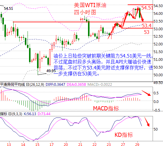 一杯水再燙再難忍,也不要放手,因為在放手的那一刻,你失去的不只有水,還有杯子。鉛筆畫的畫再美,也都是灰色的,行情走的再惡心,也都是正確的,就算沒賺錢也不要抱怨,因為你永遠不知道市場什么時候眷顧你的勇敢。 消息面: 本周三(12月28日),WTI原油2月期貨報收54.20美元/桶,漲幅0.30美元或0.6%;布油報收56.39美元/桶,漲幅0.30美元,或0.53%。由于雙節因素且市場正在觀望,行情波動并不劇烈。盤中美布兩油分別最高觸及54.36美元/桶和57.27美元/桶。 昨日交投量依然十分清淡,最近月合約交投僅有23.8萬手,遠遠低于52.5萬手的200日均值。由于當前處于圣誕、新年雙節疊加時刻,交投量預計會繼續維持低迷。市場正在持幣觀望即將于幾天后的明年1月1日生效的里程碑式減產協議。伊拉克原油部長阿魯艾比周三表示,該國將會于1月減產20-21萬桶/日。伊拉克是過去2年中,增產最快的OPEC國家。美國至12月23日當周API原油庫存意外創6周最大增幅。這讓油價在數據公布后短線下跌;加上國內成品油價迎來上調。 原油技術面分析: 美國WTI原油從四小時走勢圖來看,油價上日險些突破前期關鍵阻力54.51美元一線,不過尾盤時段多頭離場且API大增,油價快速回落,下方53.4美元附近支撐仍保存完好,進一步支撐仍關注53美元。 從指標來看,K線觸及上軌多頭離場回落,附圖MACD指標快慢線粘合拐頭偏下行,紅色動能柱縮量;KD指標快慢線死叉向下發散。 綜合來看,技術面顯示油價仍有回落需求,不過目前觸及支撐能否繼續下探還是位置,并且早盤時段交投清淡,預計亞盤時段油價窄幅震蕩,因臨近減產協議執行油價將獲得支撐,操作上仍建議低多為主。 美原油操作建議:低多為主 53美元附近做多,目標看向54美元上方,止損在52.6美元下方; 靠近54.5美元做空,目標看0.7美元左右,止損0.2美元。 白銀技術面分析: 現貨白銀從四小時走勢圖來看,白銀價格目前仍受阻于16.07美元這個阻力,若能有效突破則有可能上測16.25美元附近,下方支撐仍可關注15.8美元附近。 從指標來看,K線跌破中軌后持續反彈至觸及上軌,附圖KD指標形成金叉向上延伸。 綜合來看,技術面顯示銀價仍有上漲動能,不過走勢上后繼乏力,但后市仍預期將上漲,操作上建議以回落做多為主。 現貨白銀操作建議: 15.9美元附近做多,目標看向16.2美元附近,止損15.8美元下方; 16.25美元附近做空,目標看向16美元附近,止損在16.3美元上方。 今日重要關注數據: 15:00 英國 12月Nationwide房價指數月率(%) 21:30 美國 截至12月24日當周初請失業金人數(萬) 21:30 美國 11月批發庫存月率初值(%) 22:45 美國 截至12月25日當周彭博消費者信心指數 23:30 美國 截至12月23日當周EIA天然氣庫存(億立方英尺) 00:00 美國 截至12月23日當周EIA原油庫存(萬桶) (以上文章由春雨聚金原創,轉載請注明出處。溫馨提示,投資有風險,入市需謹慎。以上僅代表春雨個人觀點,不作操作依據,據此操作風險自擔) 文/春雨聚金(chunyujujin) |